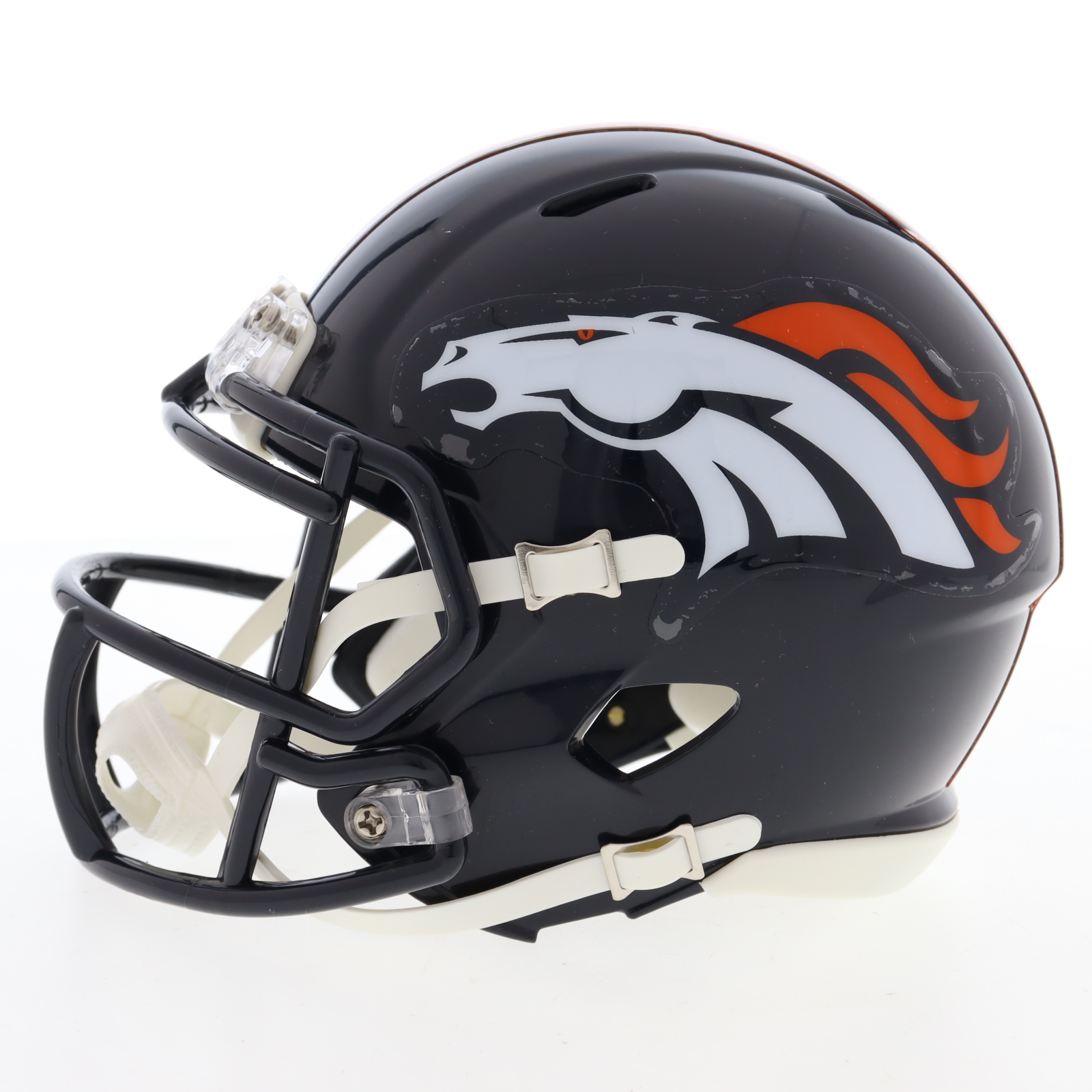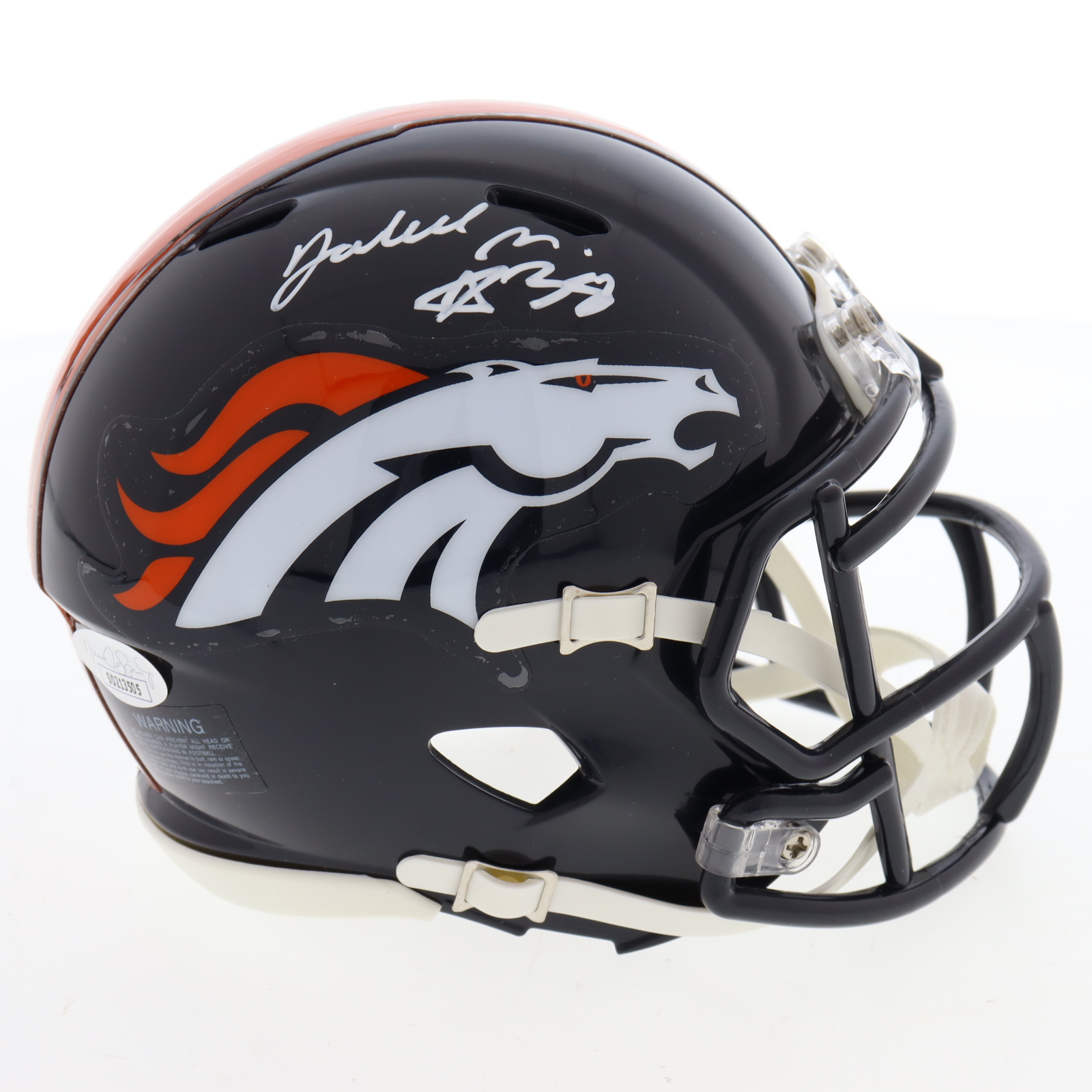 Riddell Denver Broncos Speed mini helmet. Hand-signed by Jaleel McLaughlin