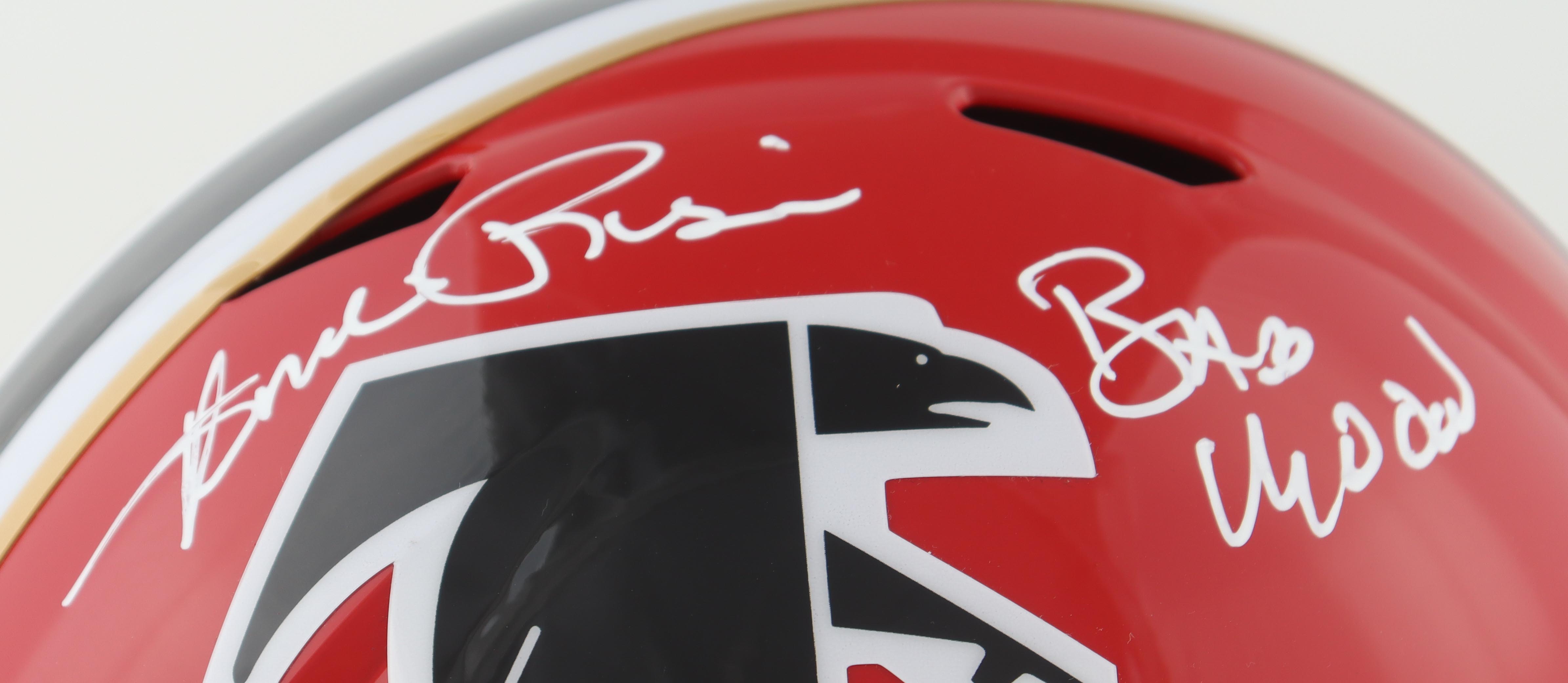 Riddell Atlanta Falcons Full-Size replica Speed helmet has been hand-signed and inscribed by Andre Rison.