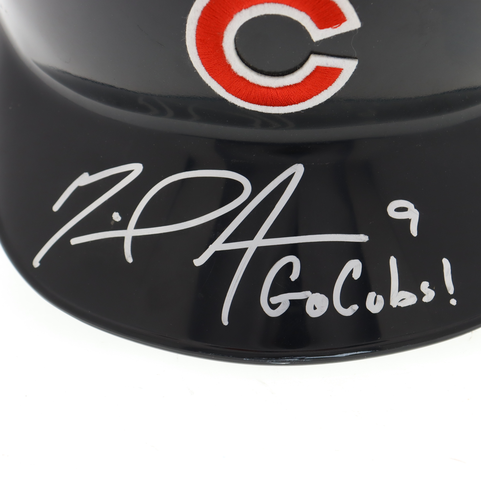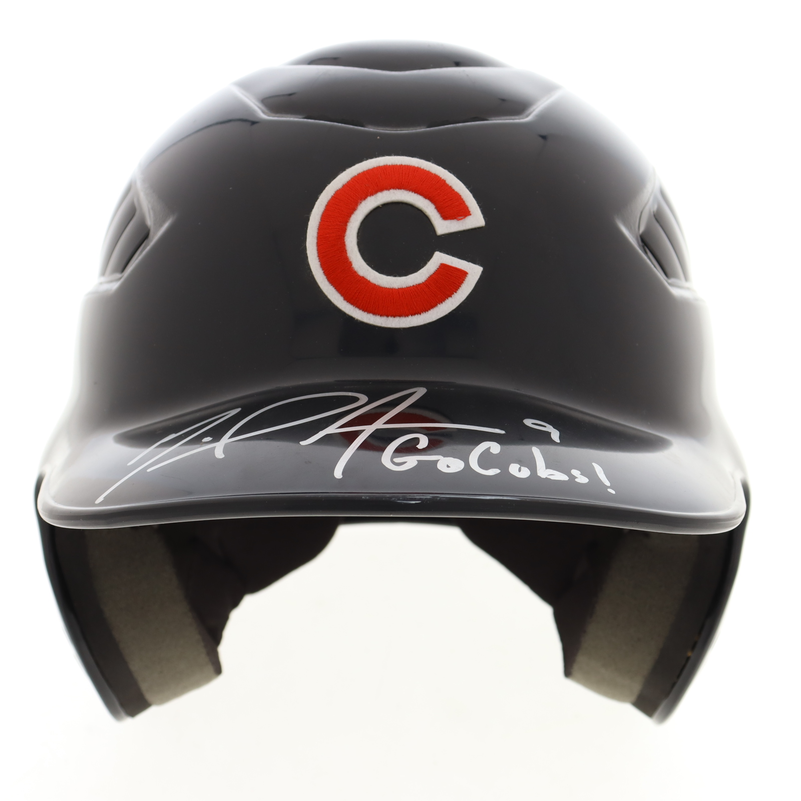 Chicago Cubs full-size plastic souvenir replica batting helmet. Hand-signed and inscribed by Miguel Amaya.
