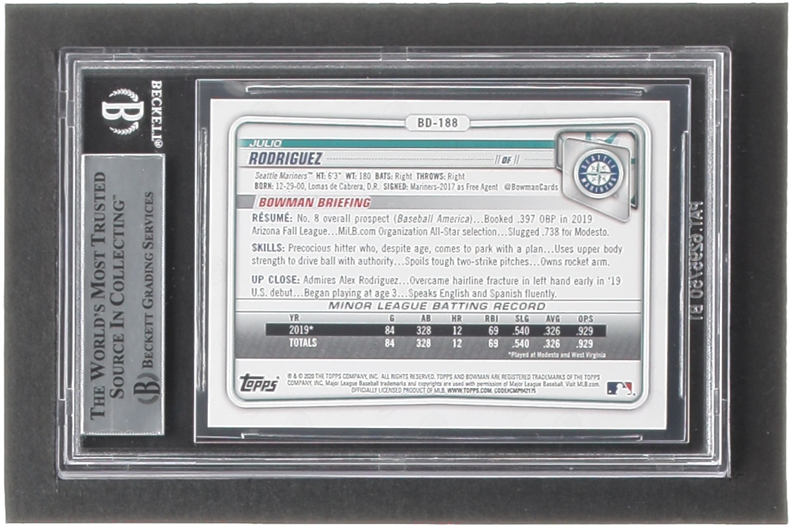 Julio Rodriguez Signed 2020 Bowman Draft #BD188 (BGS)