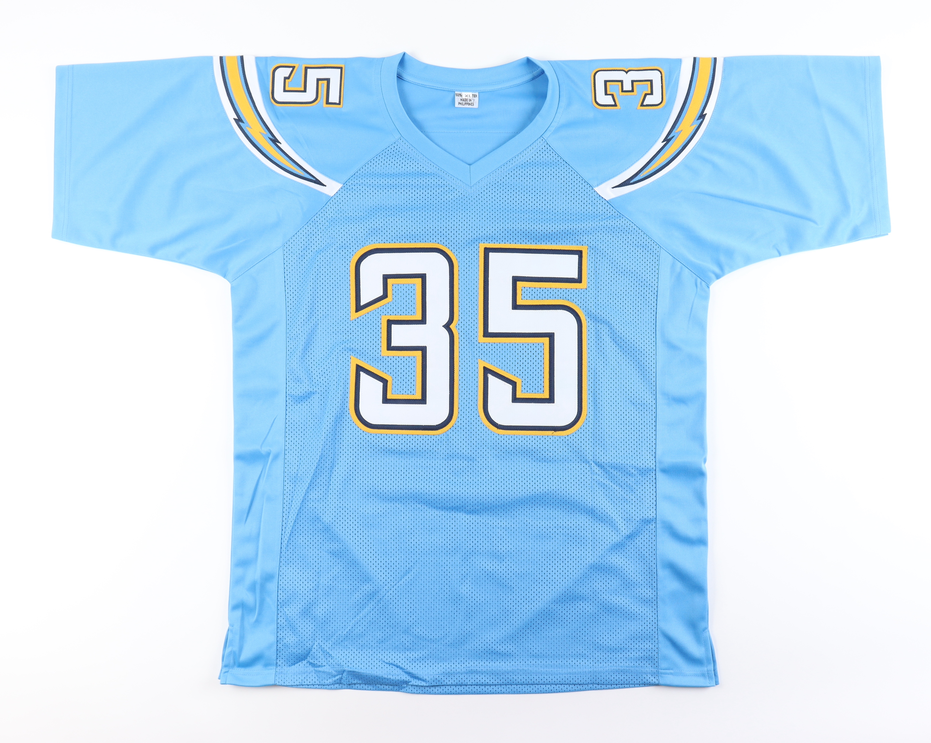 Custom jersey with everything sewn on, size XL. Hand-signed by Larry Rountree III.