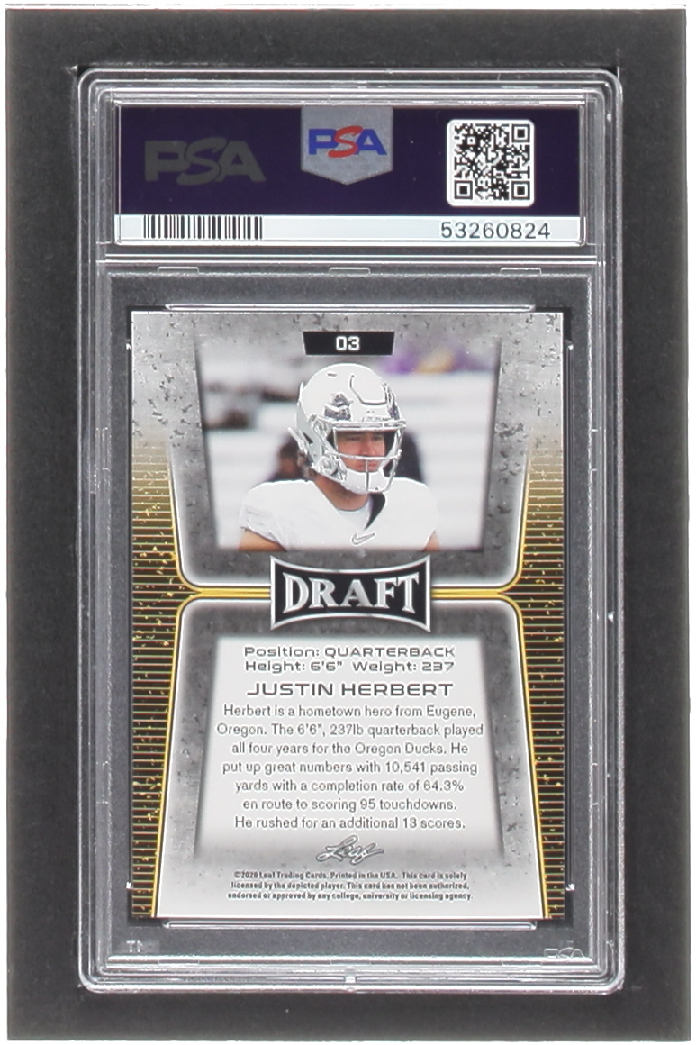 Justin Herbert 2020 Leaf Draft Gold #3 RC (PSA 10)