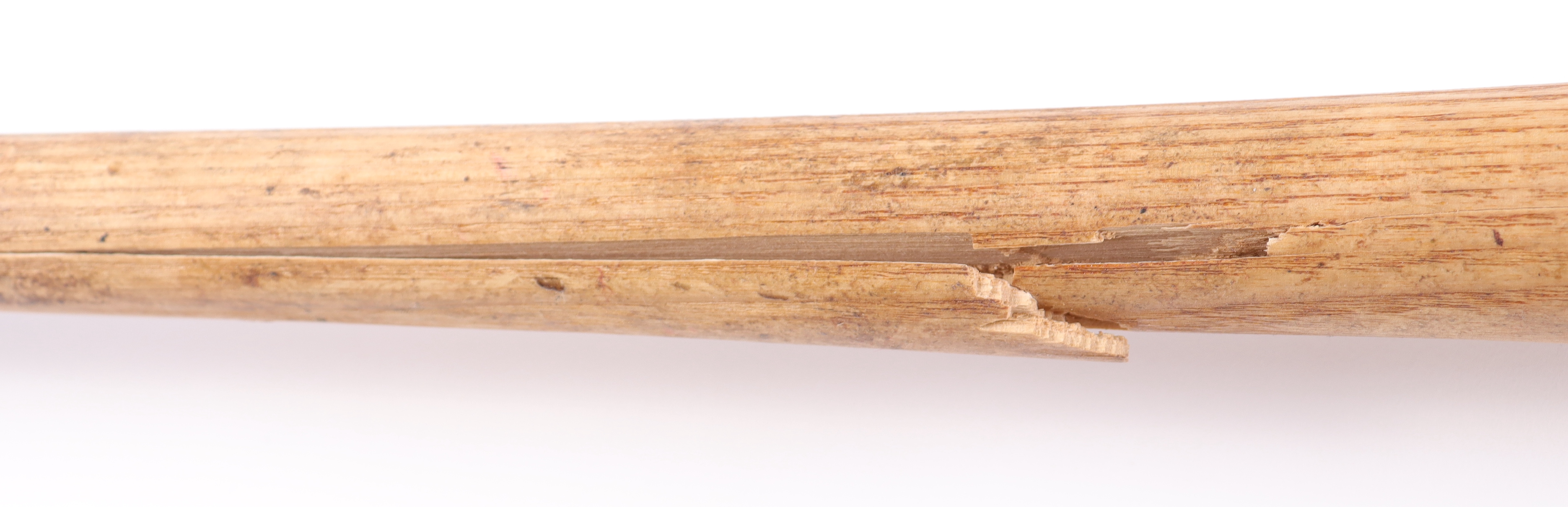 Rawlings Pro Bone Rubbed Big Stick IM77BR baseball bat. The bat has been hand-signed by Kyle Schwarber (Philadelphia Phillies). Please note the bat has been game-used and cracked by an unknown player.