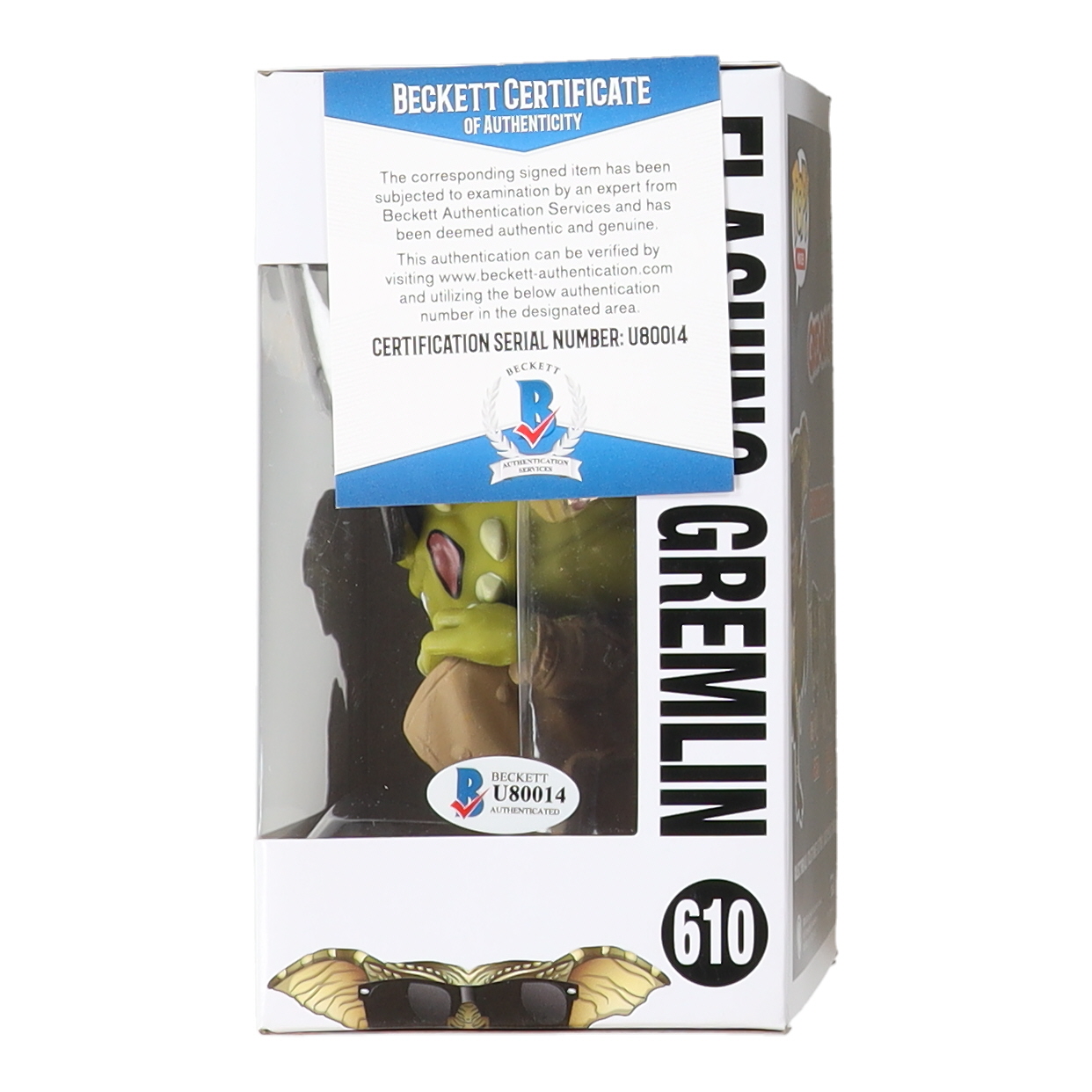 Funko pop! vinyl figure measures approximately 4" tall and the packaging has been hand-signed by Joe Dante.