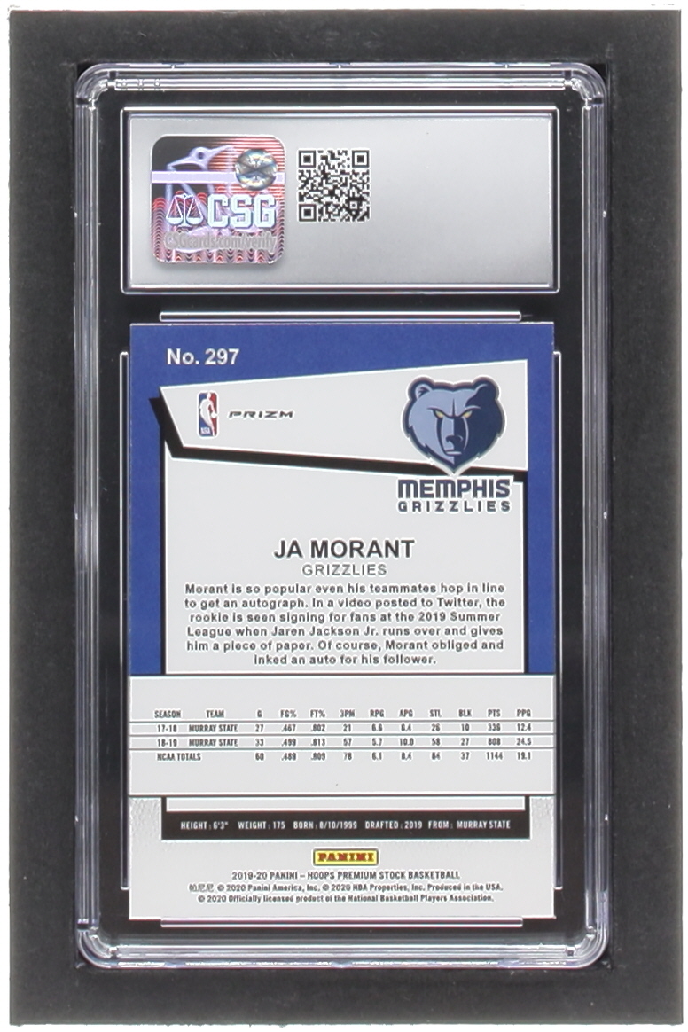 Ja Morant 2019-20 Hoops Premium Stock Prizms Silver Laser #297 RC (CSG 10)