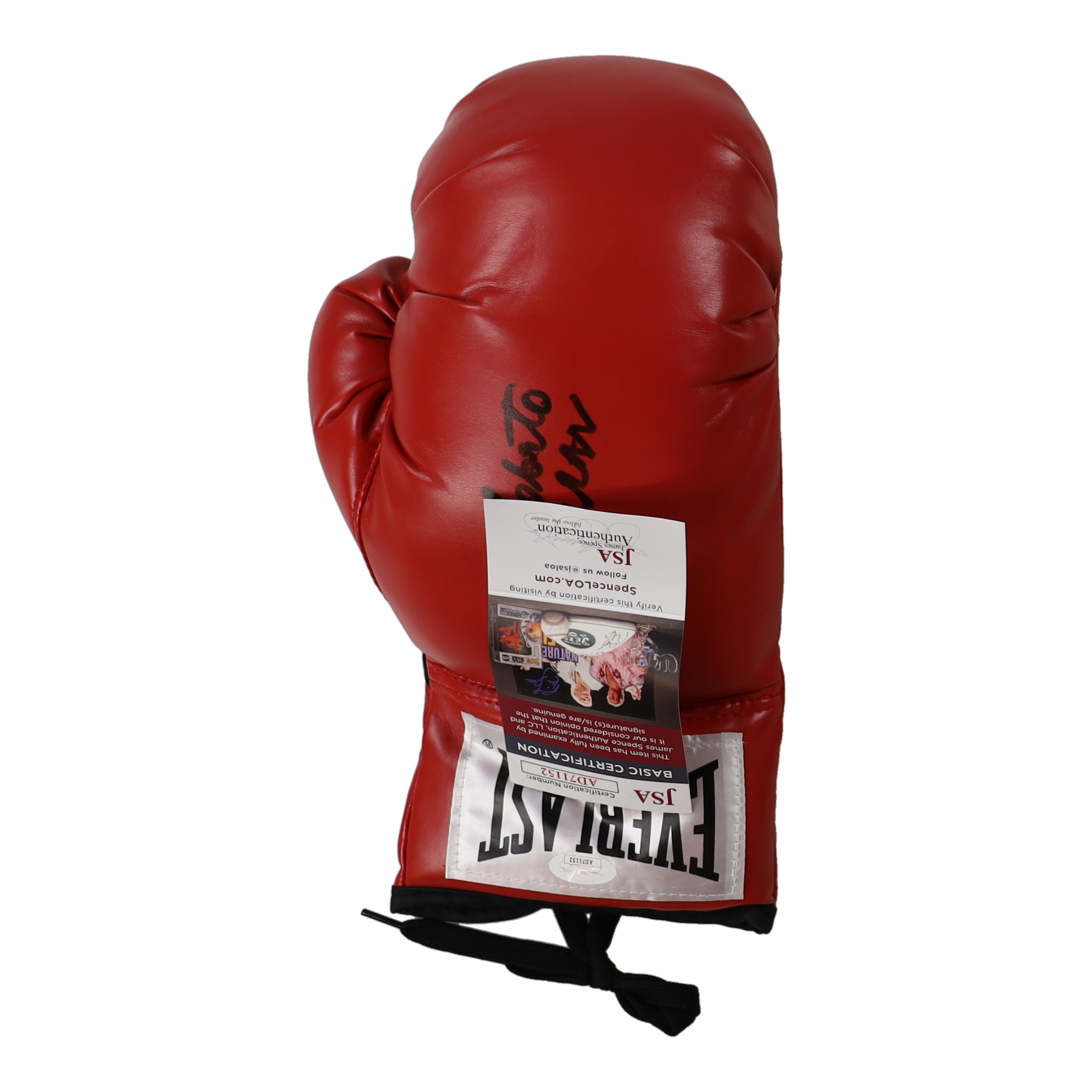 Everlast boxing glove has been hand-signed by Roberto Duran (HOF).