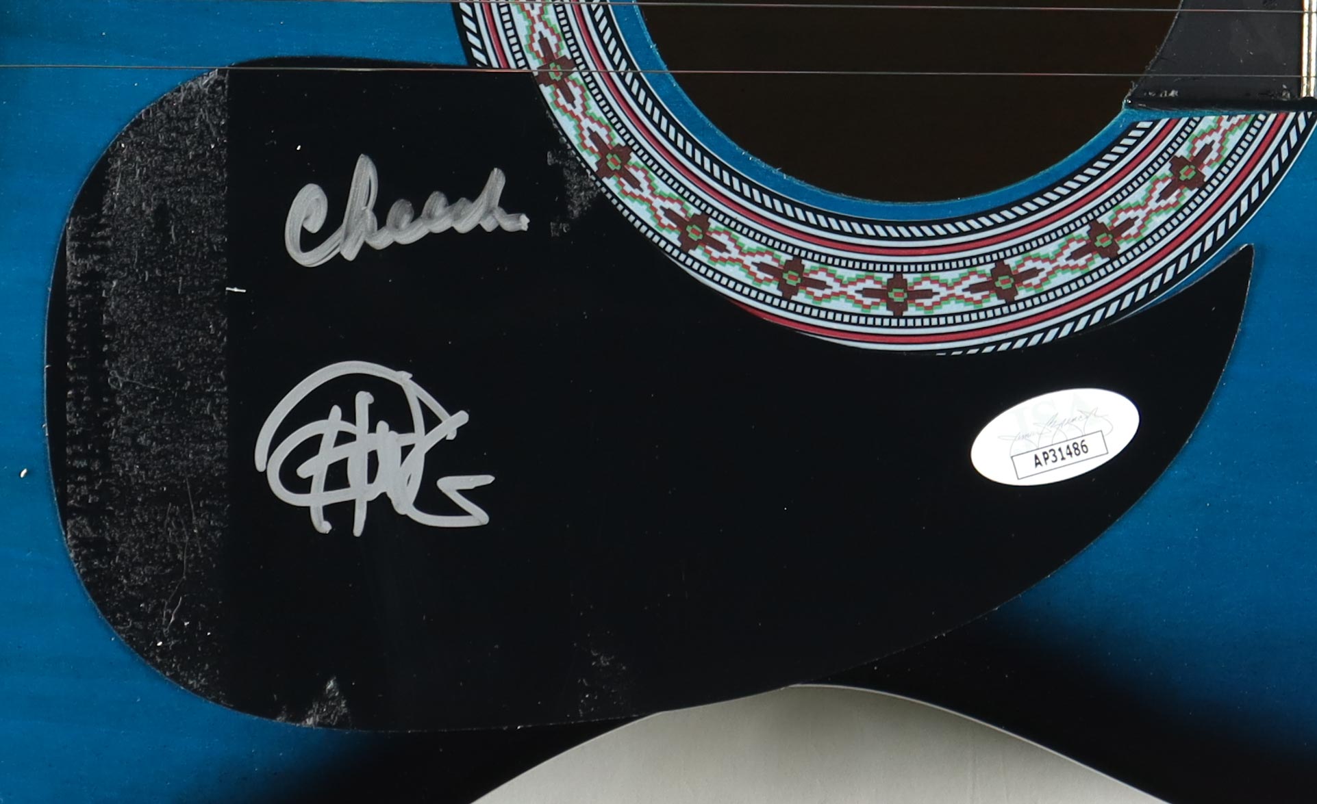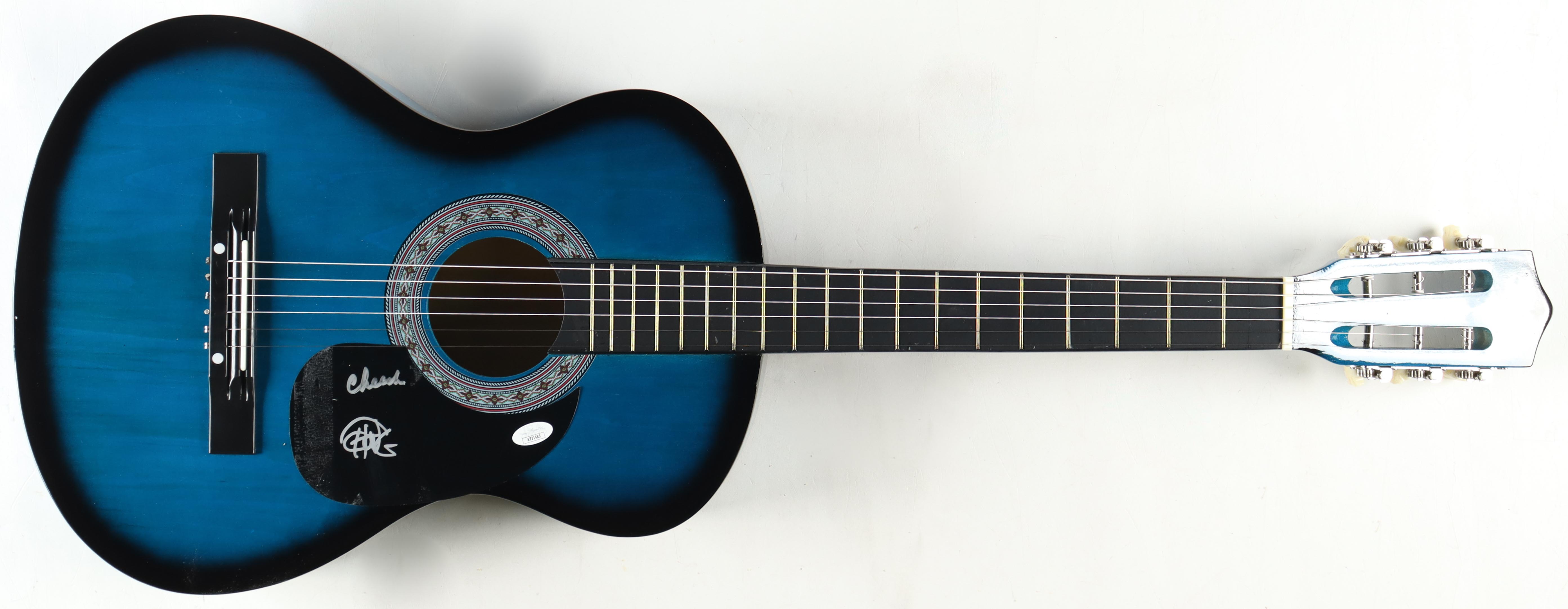 Zeny Acoustic Guitar measures approximately 38" in length and has been hand-signed on the pick-guard by Cheech Marin and Tommy Chong.