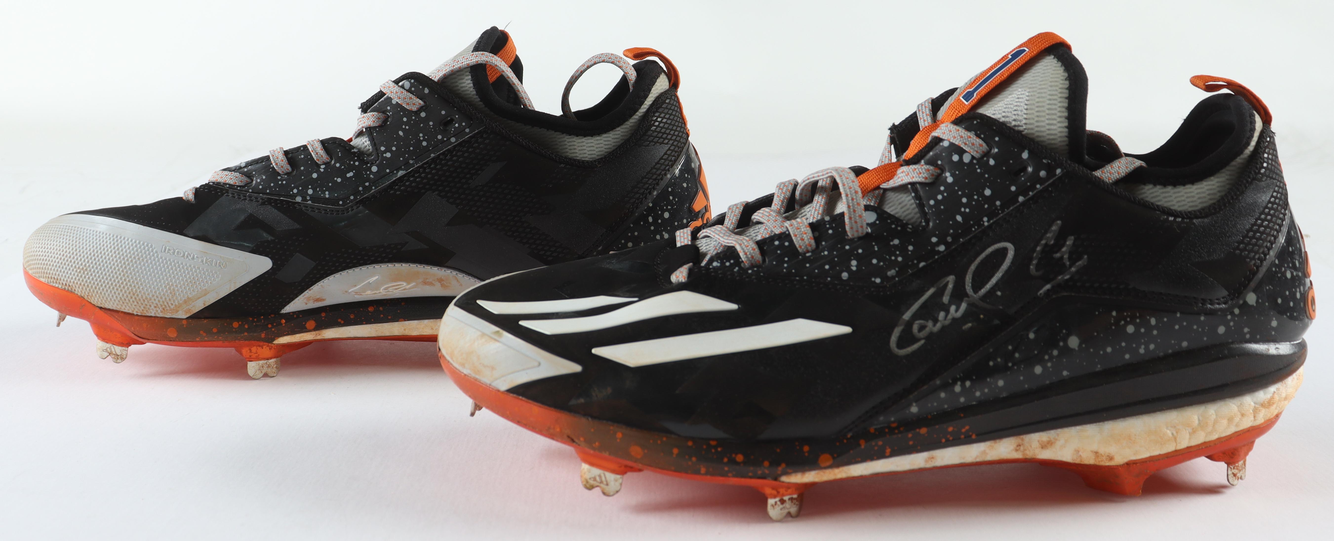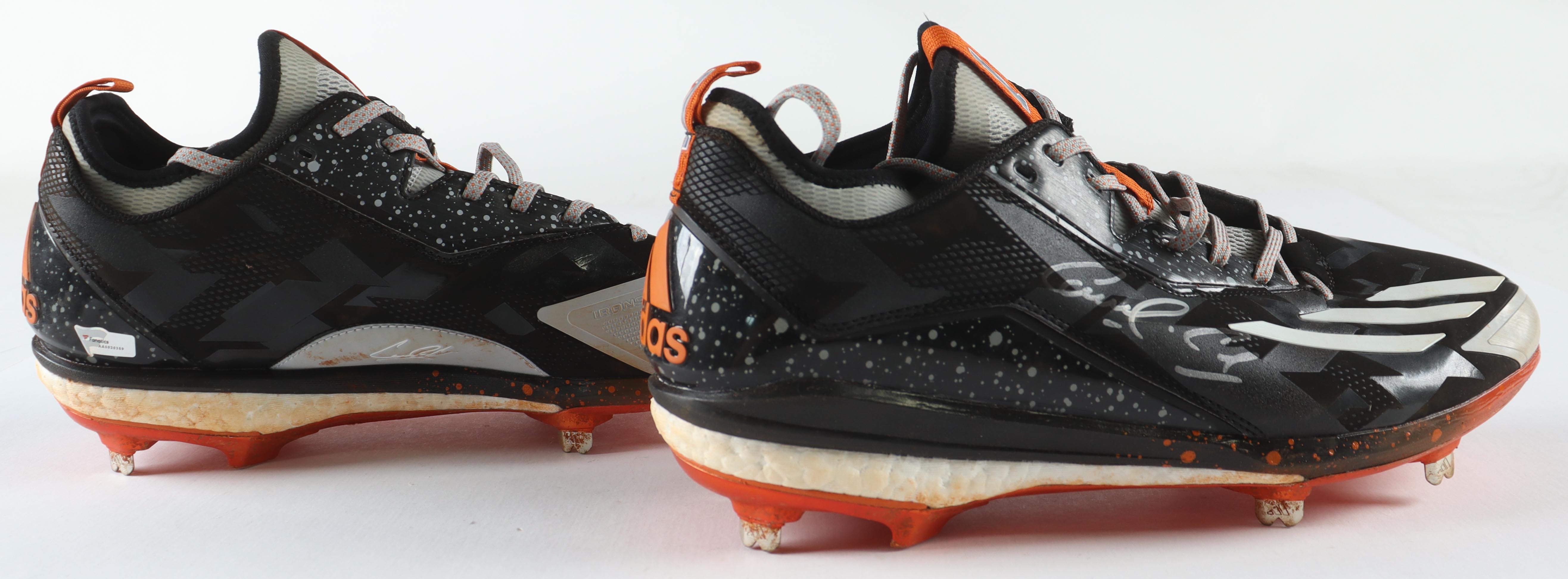 Pair of game-used Adidas baseball Cleats, size 13. Both shoes have been hand-signed by Carlos Correa (Houston Astros). Cleats have been game used by Correa.