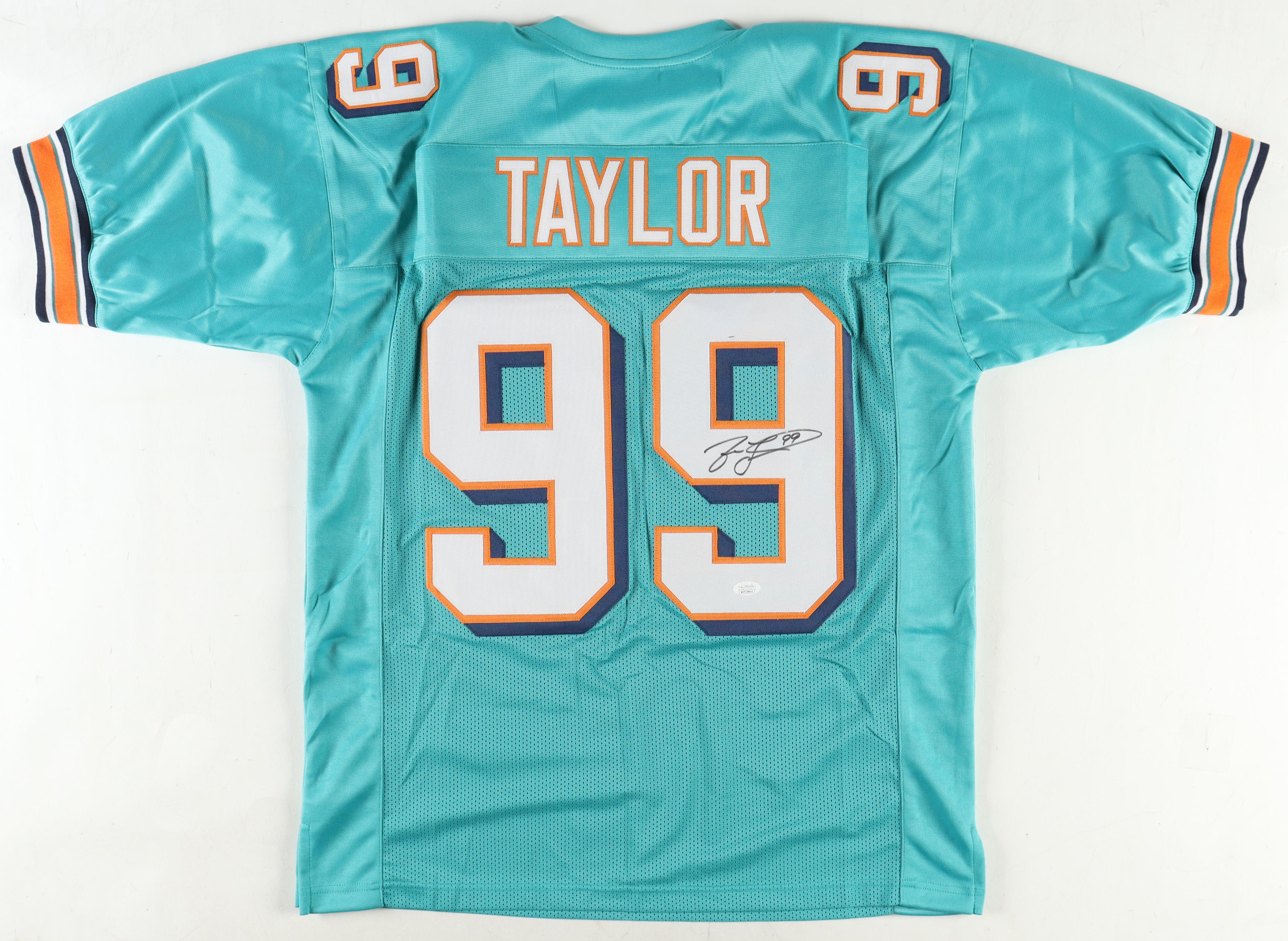 Custom jersey with everything sewn on, size XL. Hand-signed by Jason Paul Taylor (HOF).