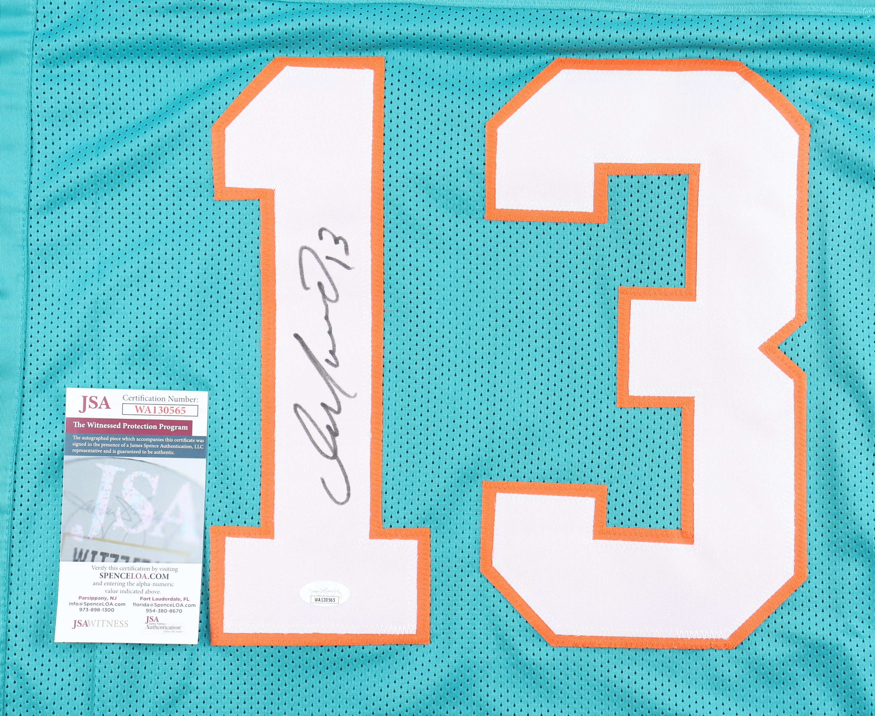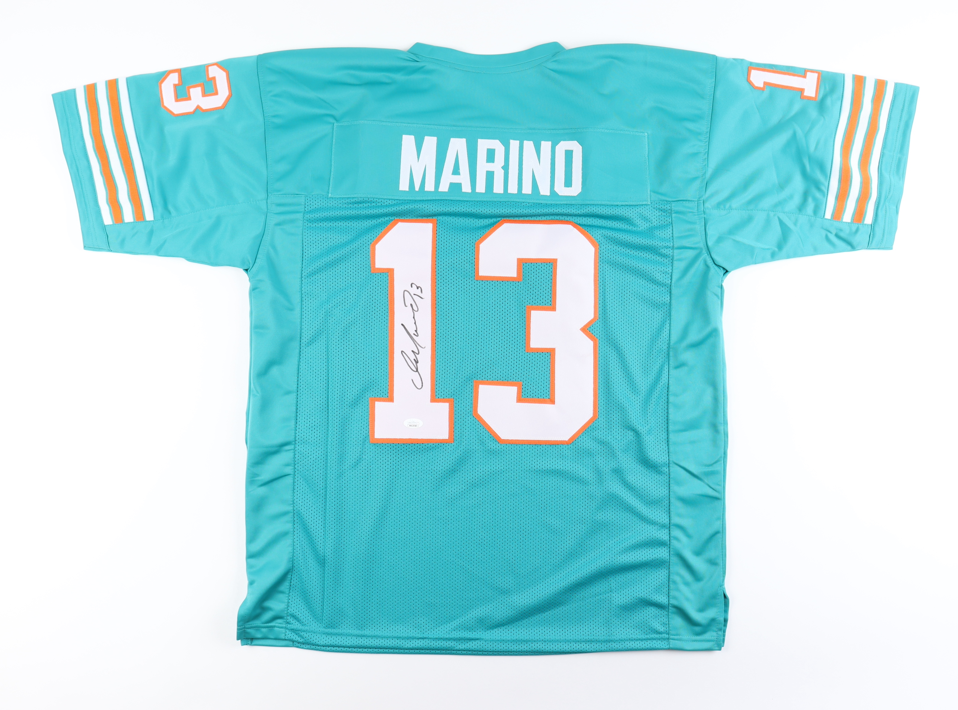 Custom jersey with everything sewn on, size XL. Hand-signed by Dan Marino (HOF).