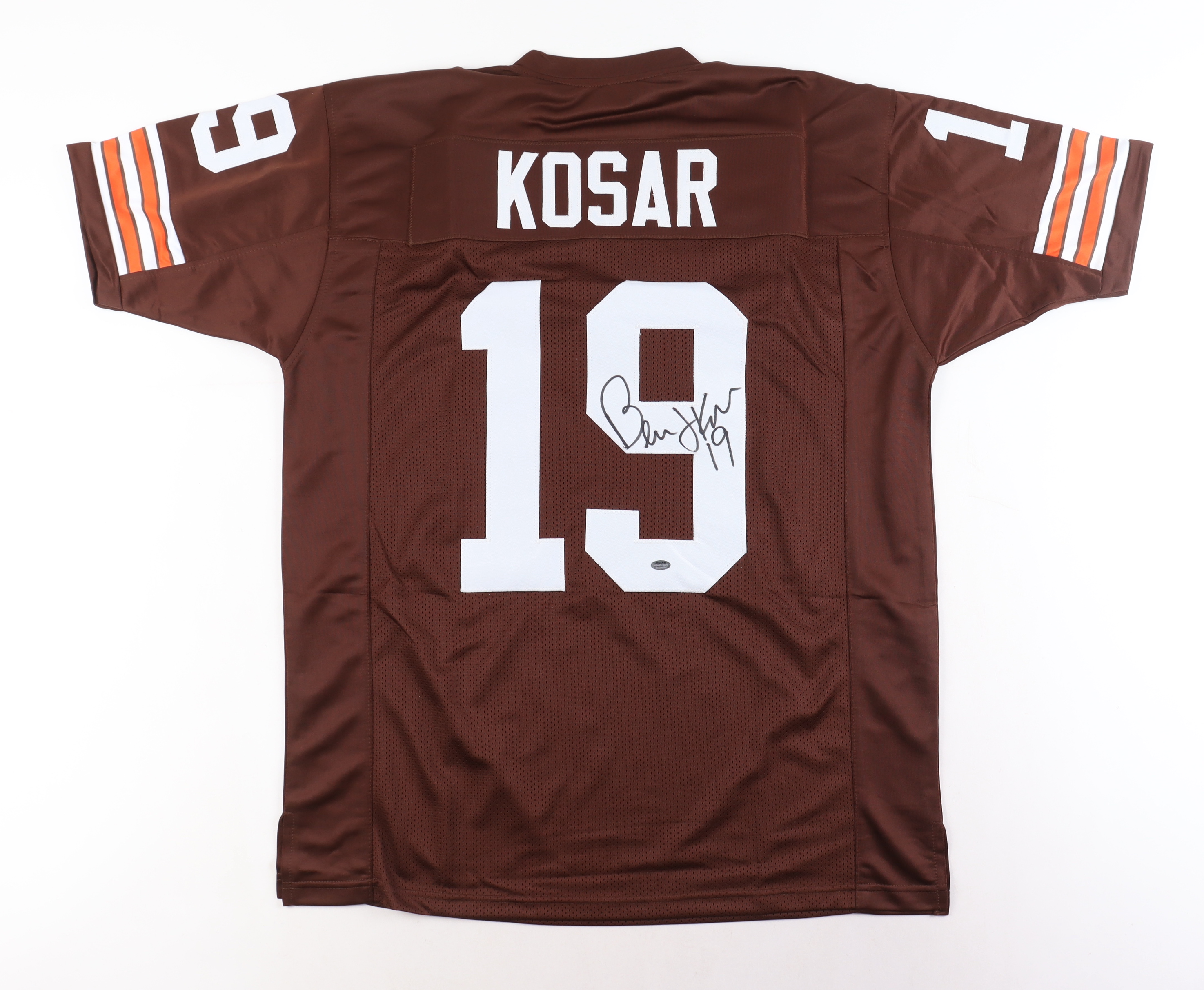 Custom jersey. Everything sewn on, size XL. Hand-signed by Bernie Kosar.