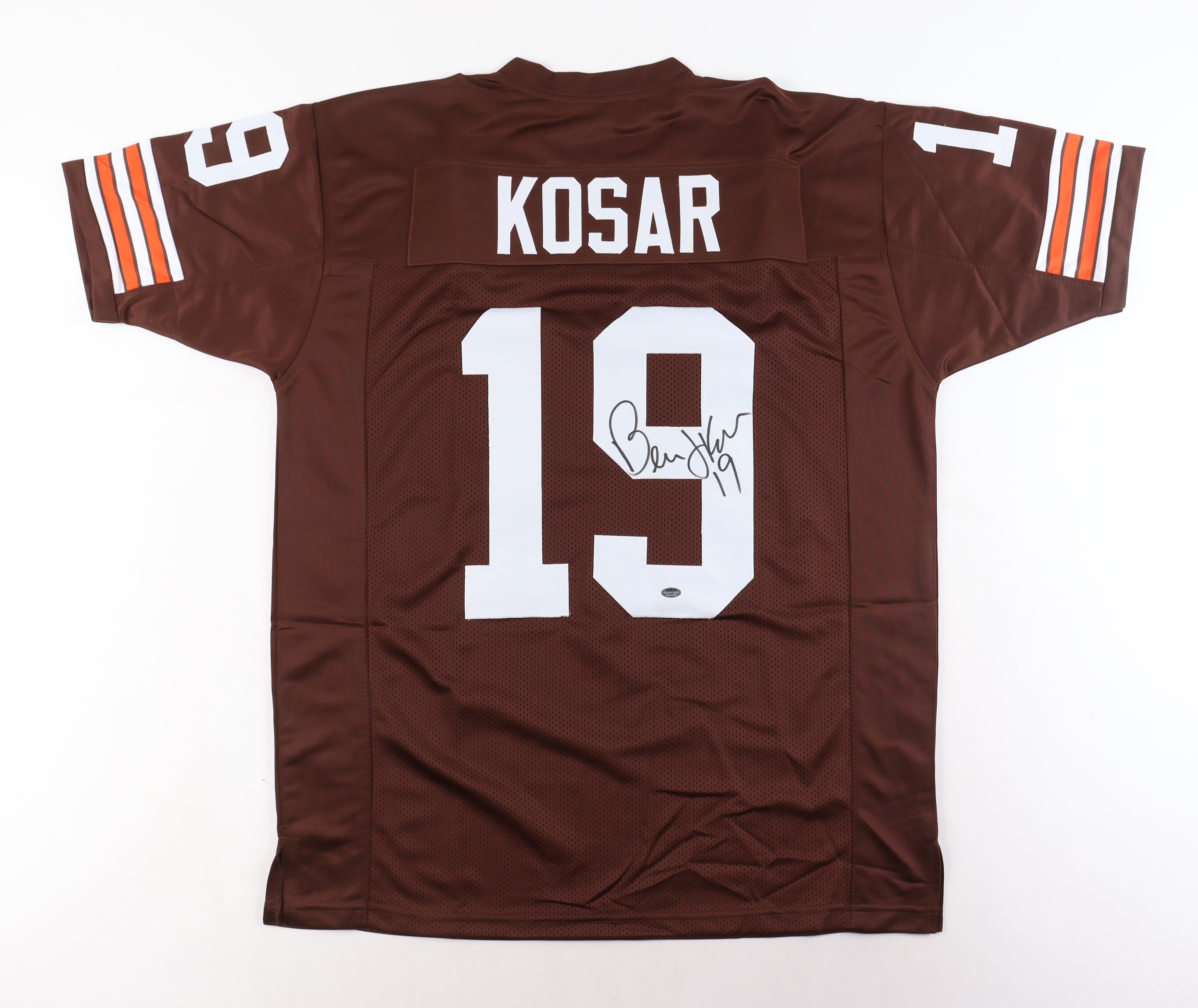 Custom jersey. Everything sewn on, size XL. Hand-signed by Bernie Kosar.
