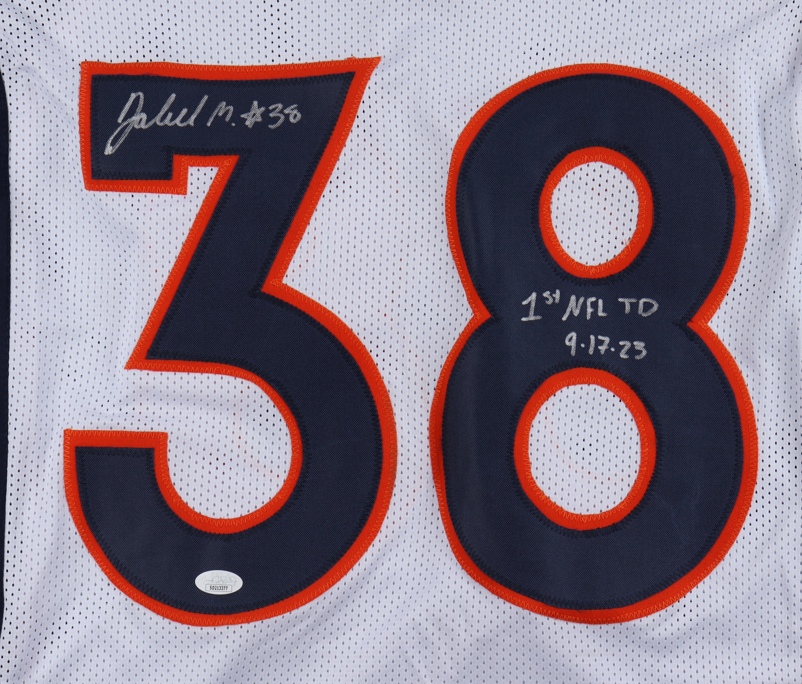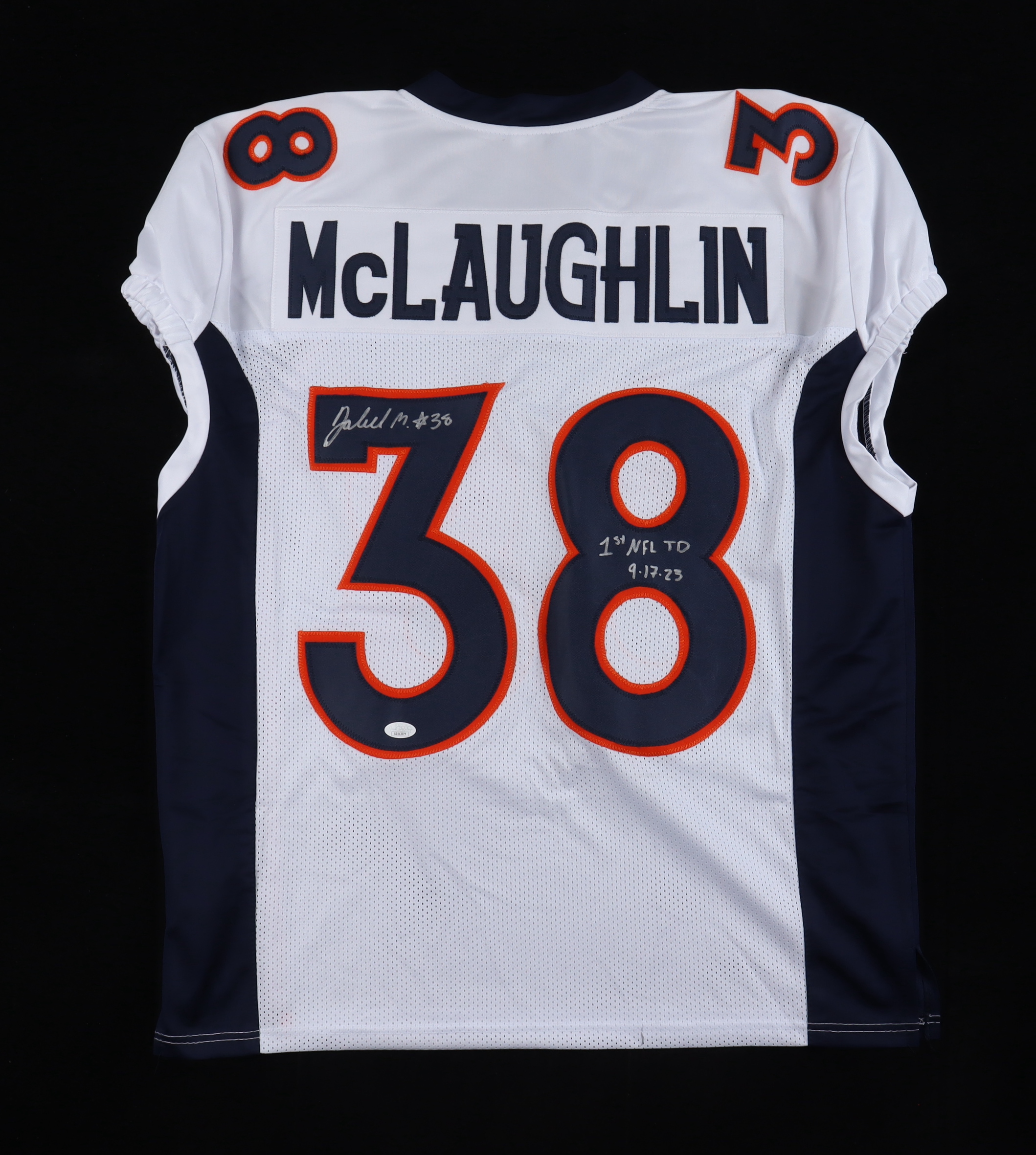 Jaleel McLaughlin Signed Jersey Inscribed "1st NFL TD 9-17-23" (JSA)