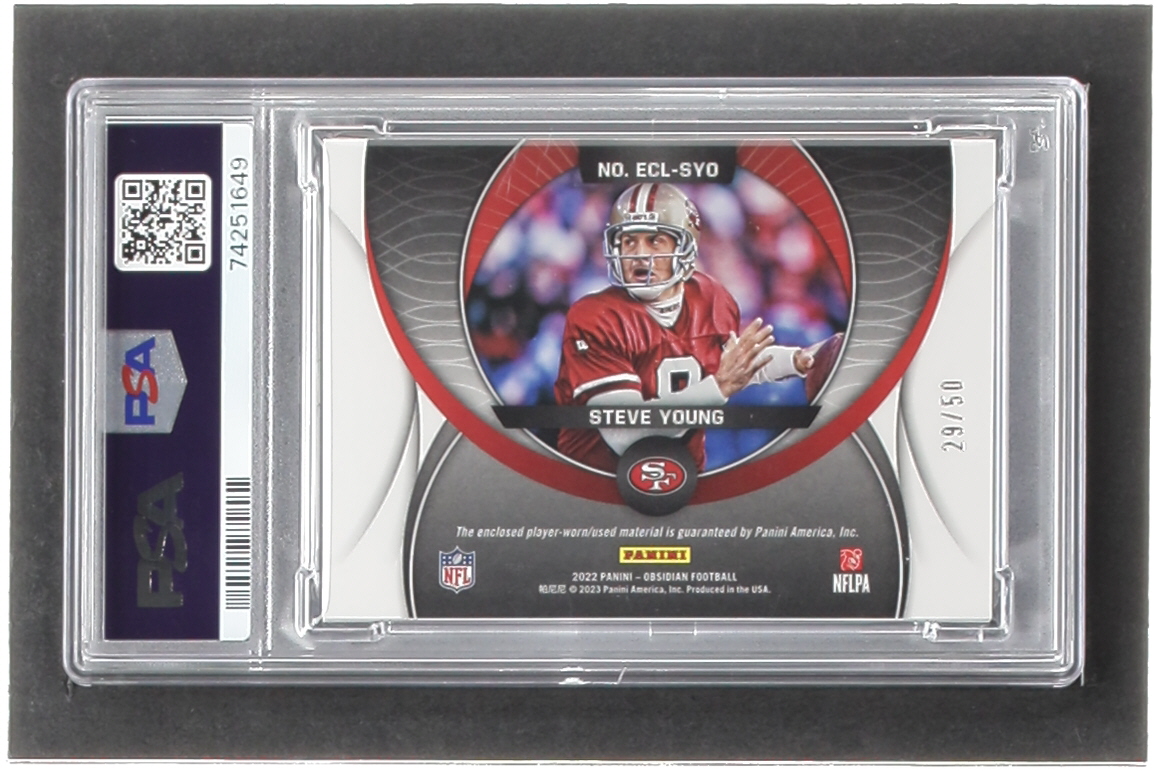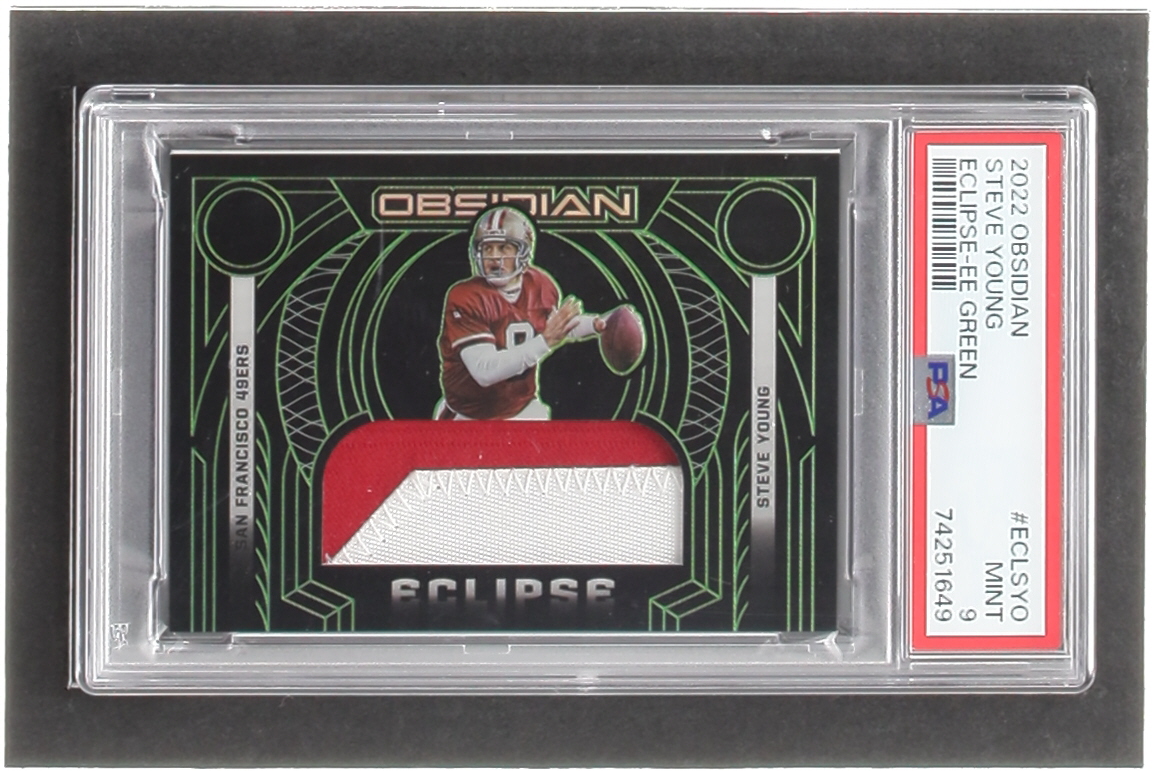 Steve Young 2022 Panini Obsidian Eclipse Jerseys Electric Etch Green #9 #29/50 (PSA 9)