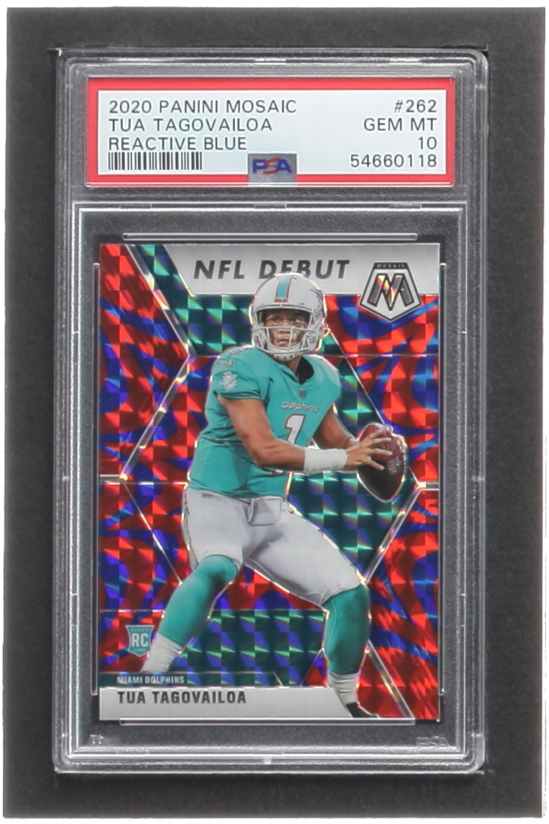 Tua Tagovailoa 2020 Panini Mosaic Mosaic Reactive Blue #262 DEB RC (PSA 10)