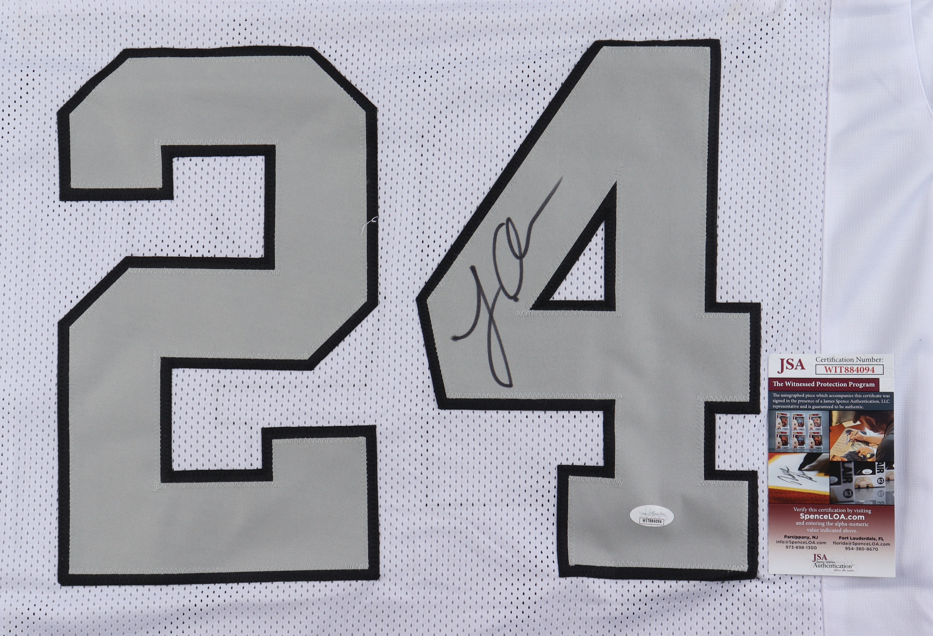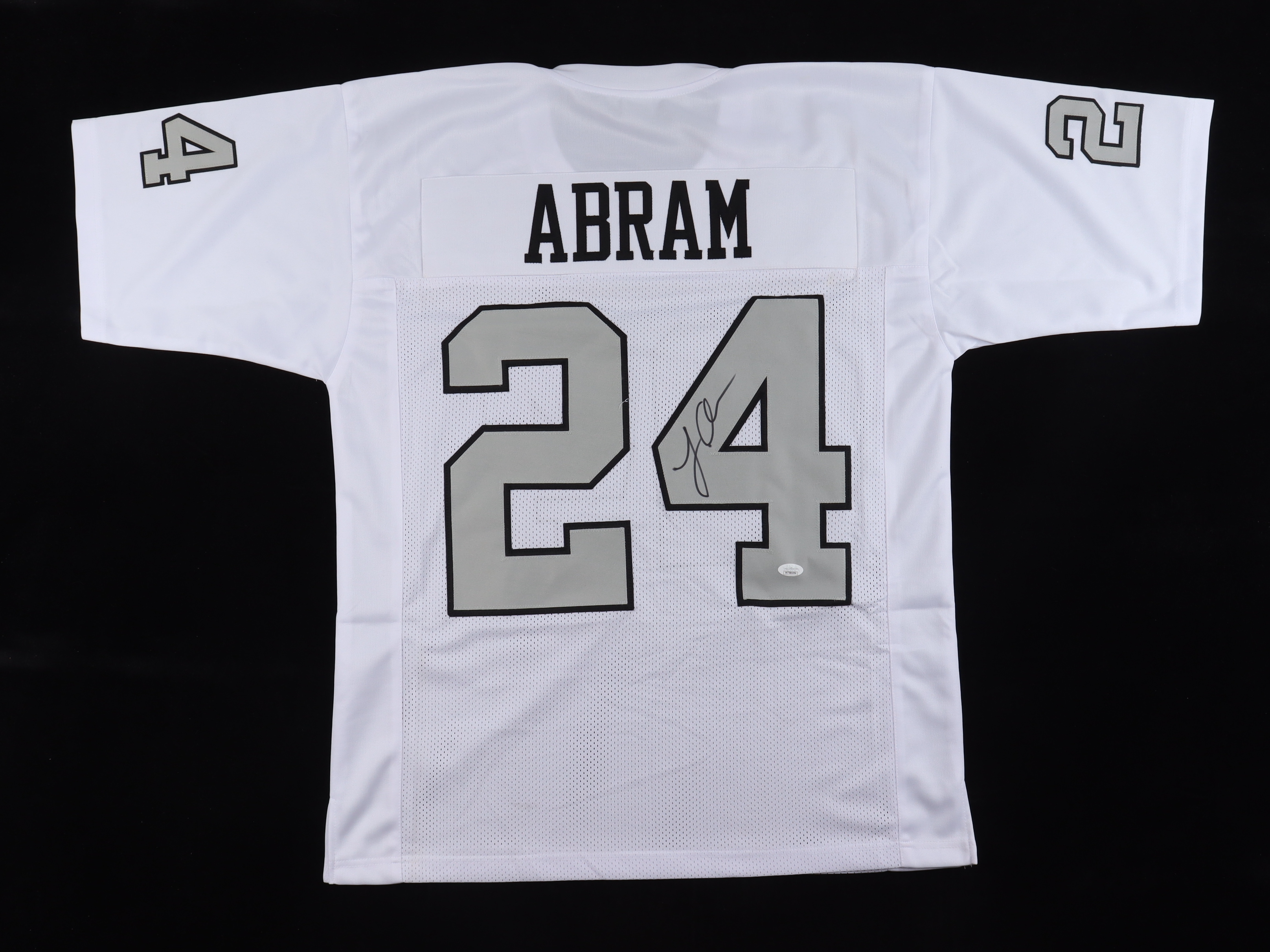 Custom jersey with everything sewn on, size XL. Hand-signed by Johnathan Abram.