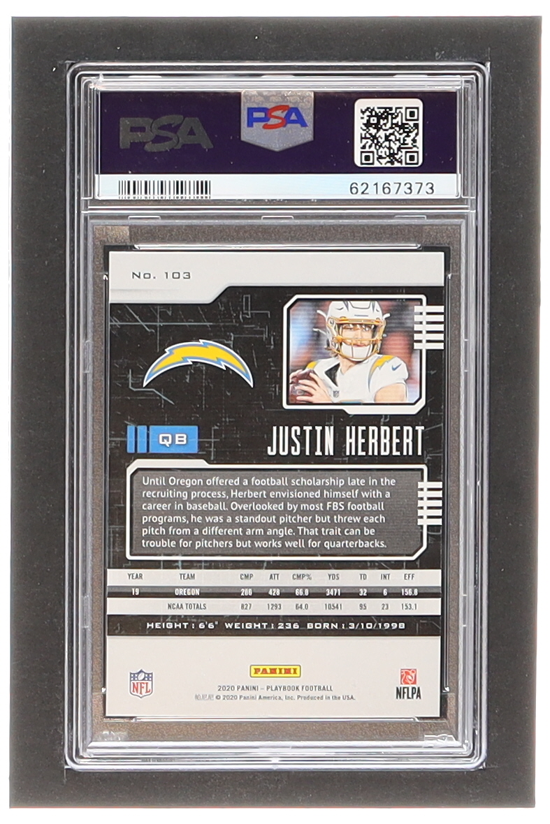 Justin Herbert 2020 Panini Playbook Purple #103 RC (PSA 9)