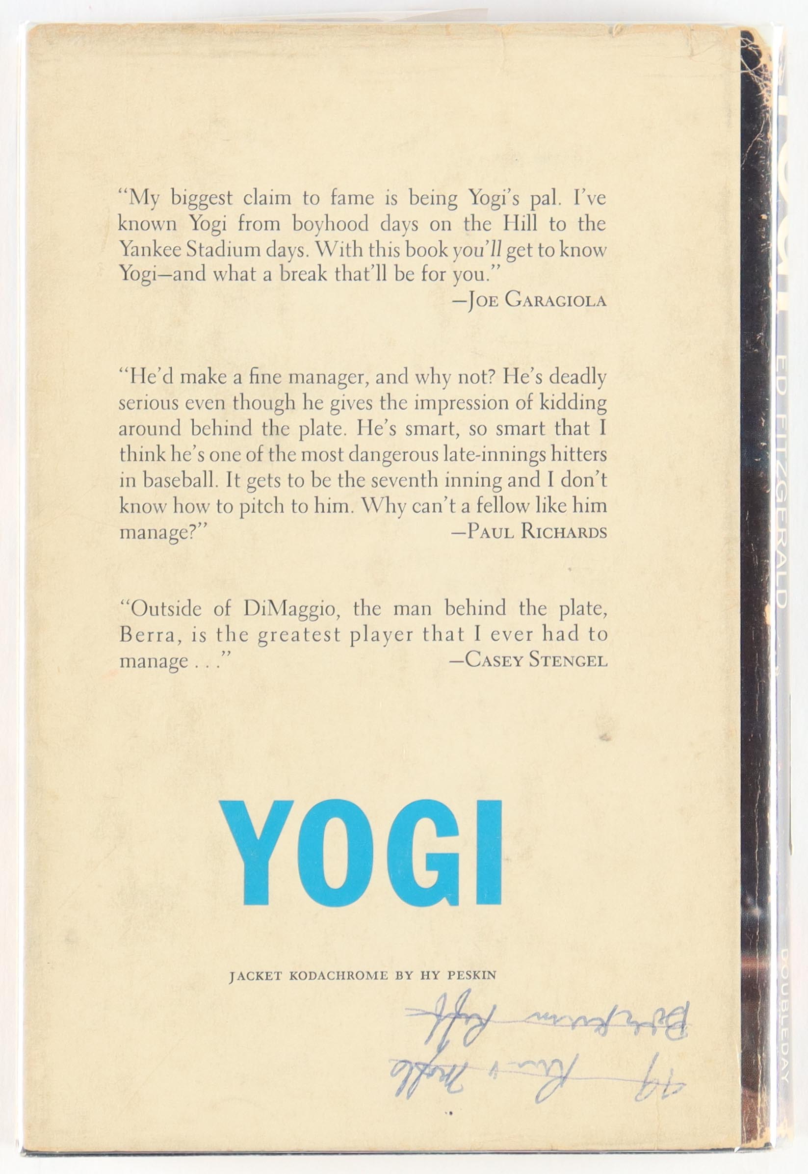 Hard cover book, hand-signed by Yogi Berra (D. 2015, New York Yankees, HOF)