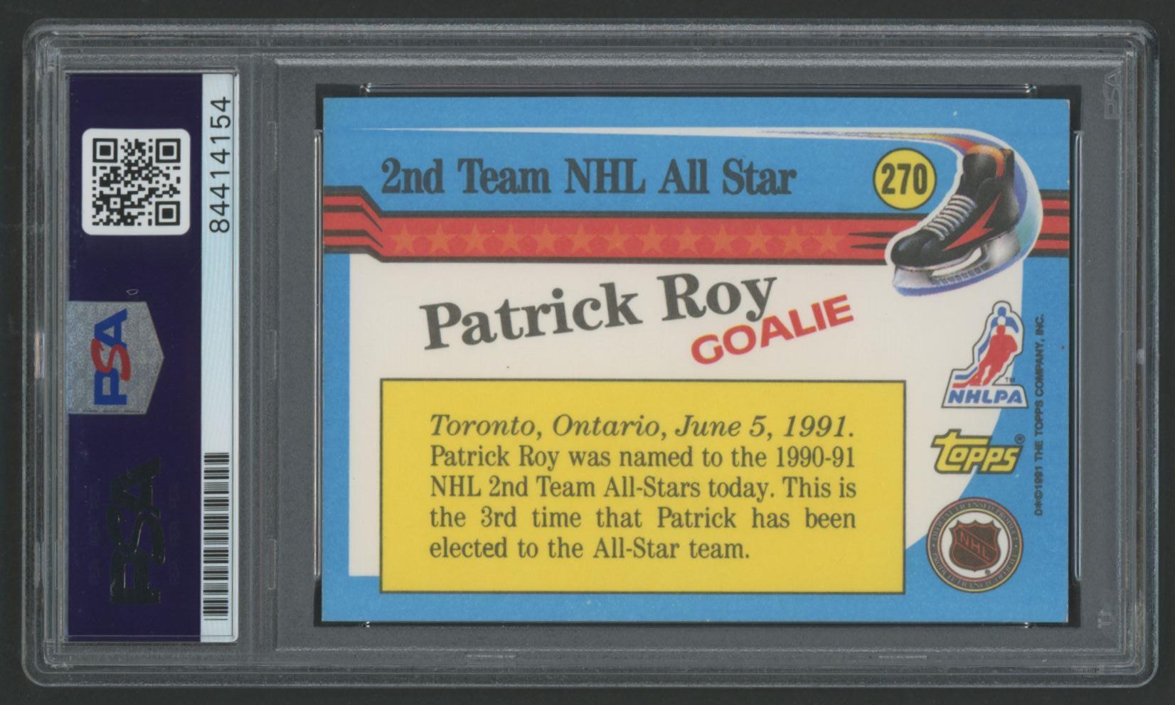 Patrick Roy Signed 1991-92 Topps #270 AS (PSA)