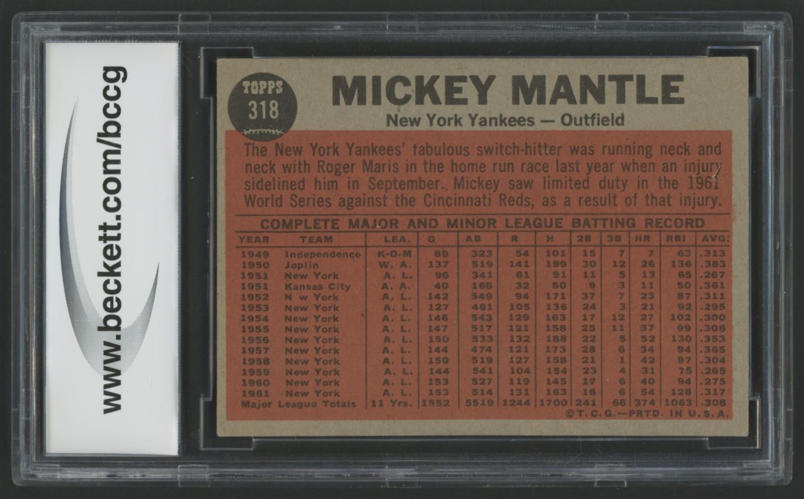 Mickey Mantle 1962 Topps #318 IA (BCCG 8)