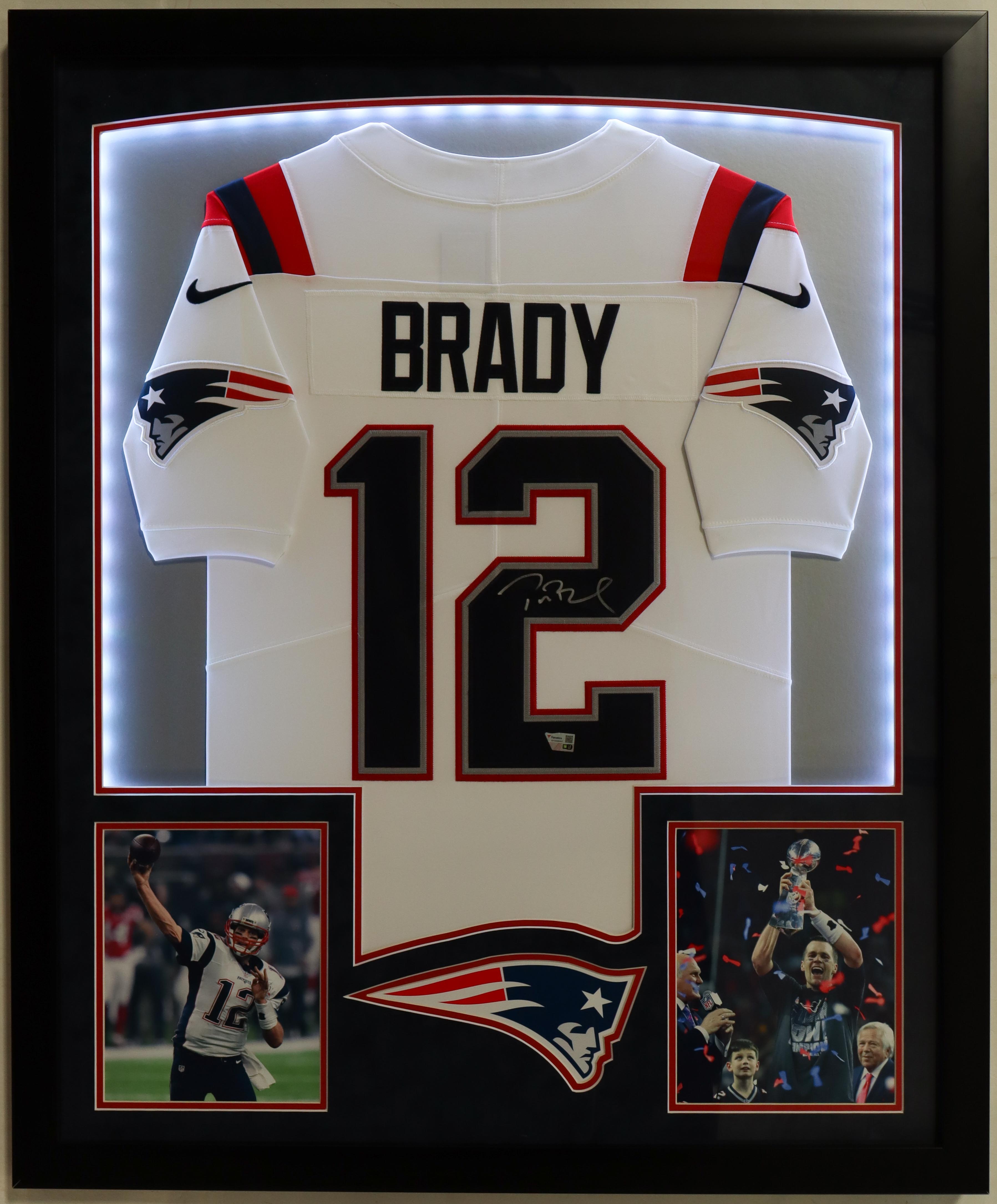 Tom Brady Signed Patriots Custom Framed LED Backlit Nike Jersey Display (Fanatics)