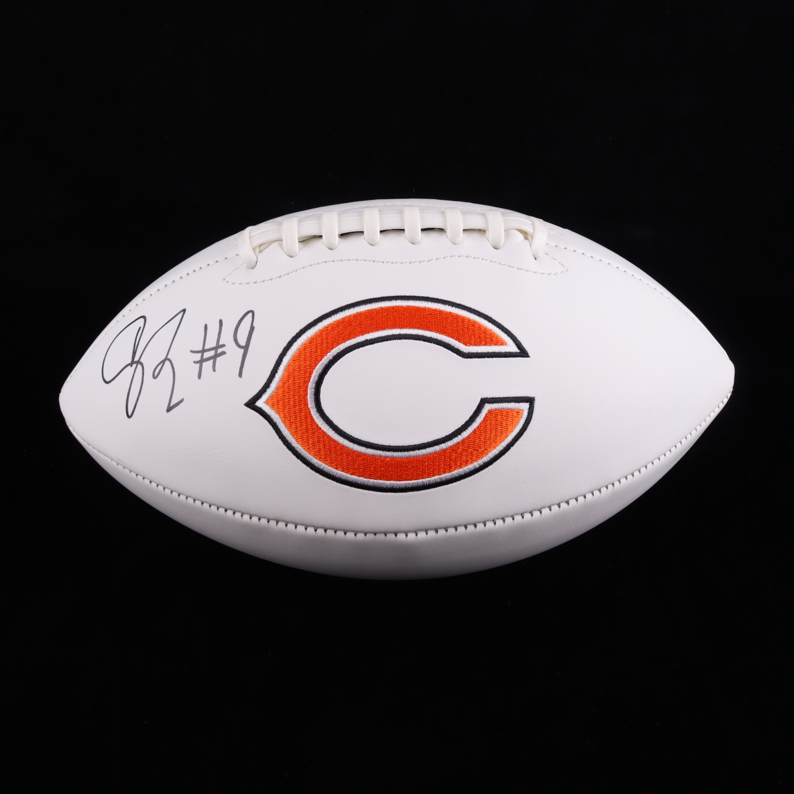 Chicago Bears logo football has been hand-signed by Jaquan Brisker.