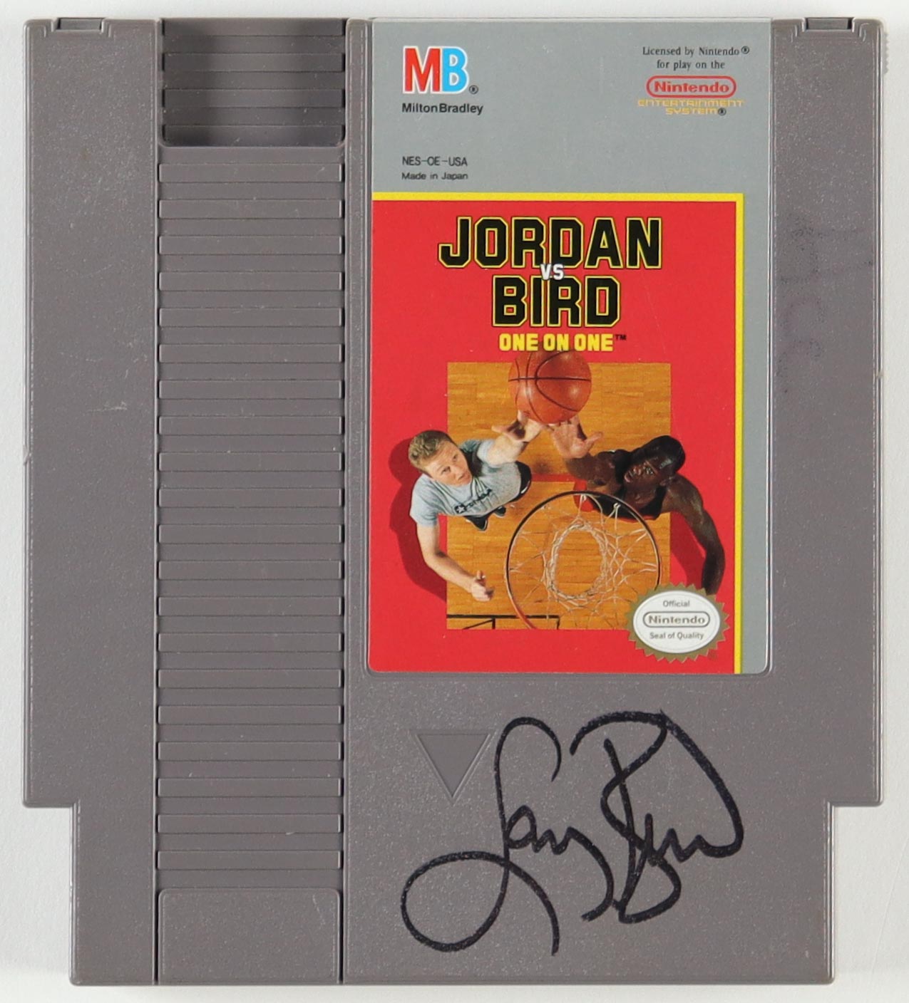 "Jordan vs. Bird: One on One" Nintendo NES Video Game Cartridge has been hand-signed by Larry Bird (Boston Celtics, HOF).