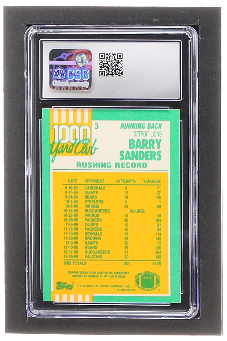 Barry Sanders 1990 Topps 1000 Yard Club Disclaimer Back #3 (CSG 8.5)