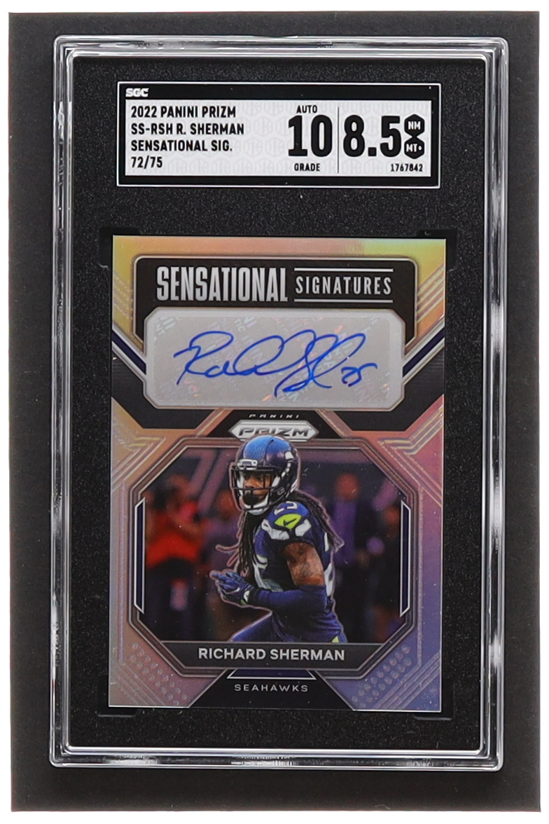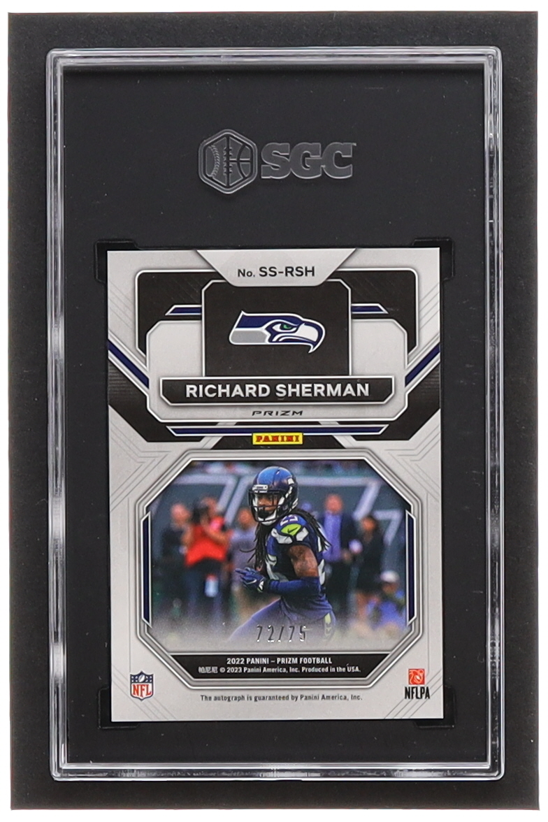 Richard Sherman 2022 Panini Prizm Sensational Signatures #60 #72/75 (SGC 8.5 | Auto 10)