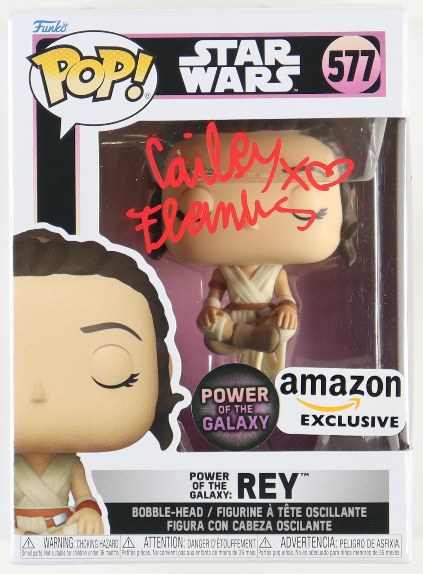 Cailey Fleming Signed "Star Wars" #577 Rey: Power of the Galaxy Funko Pop! Vinyl Figure with Hand Drawn X & Heart (JSA)