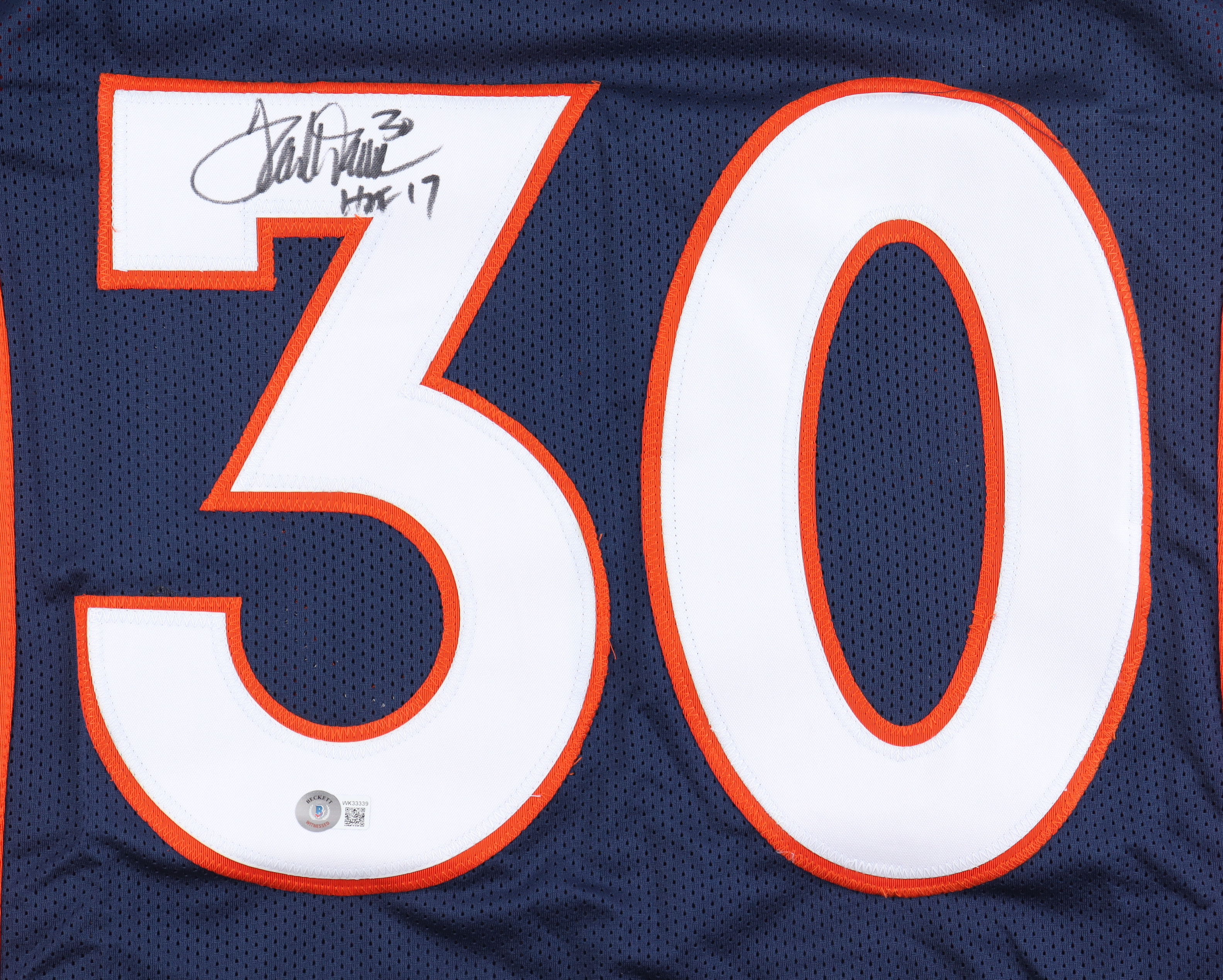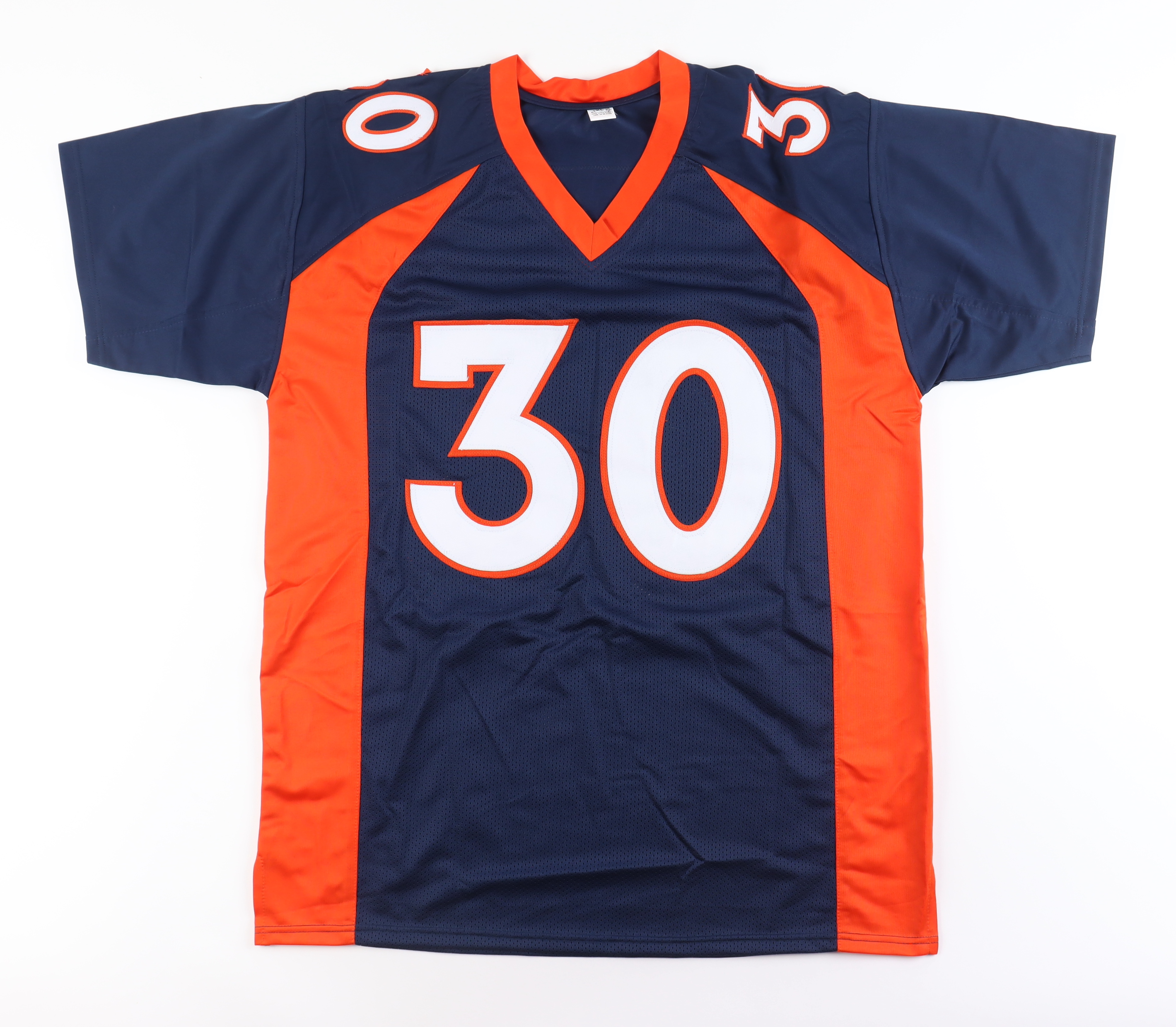 Custom jersey. Everything sewn on, size XL. Hand-signed and inscribed by Terrell Davis (HOF).