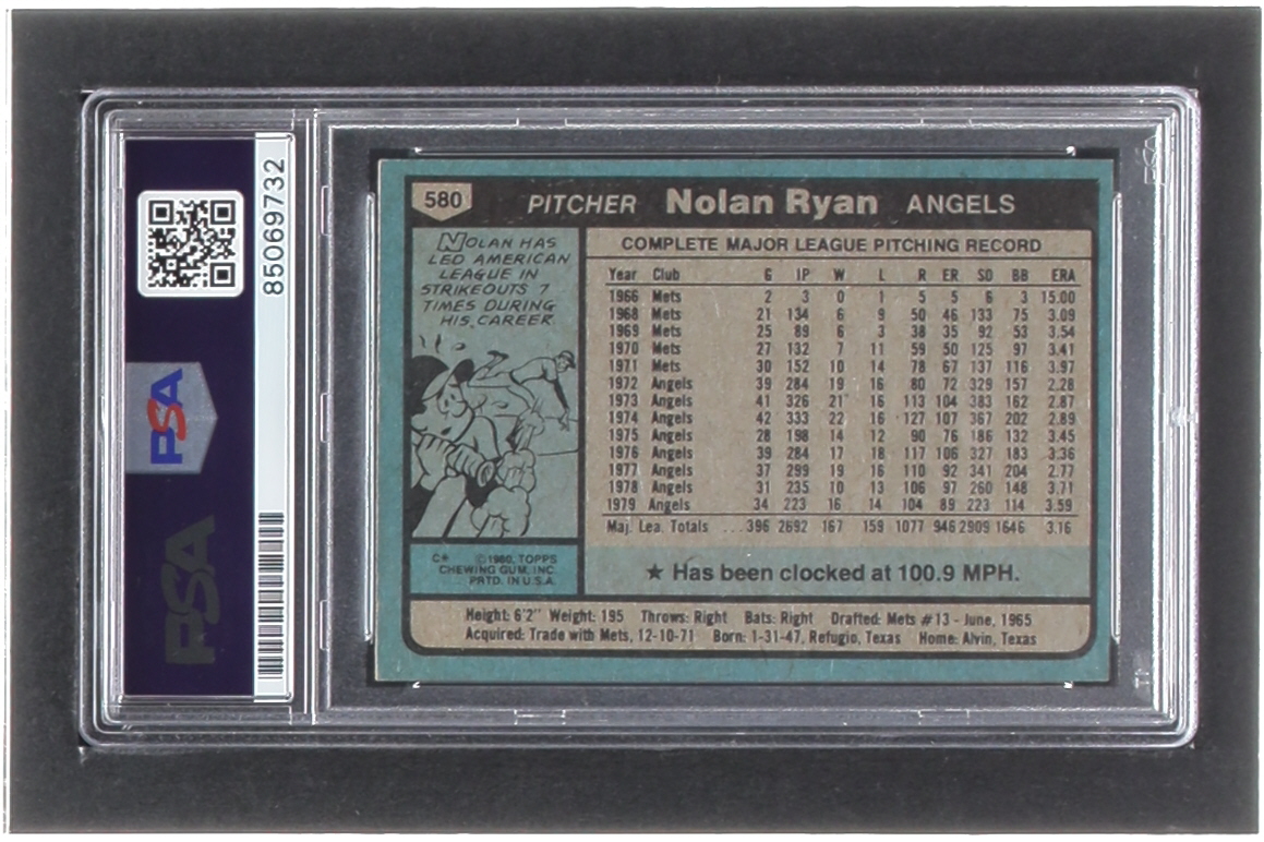 Nolan Ryan Signed 1980 Topps #580 (PSA | Autograph Graded PSA 10)