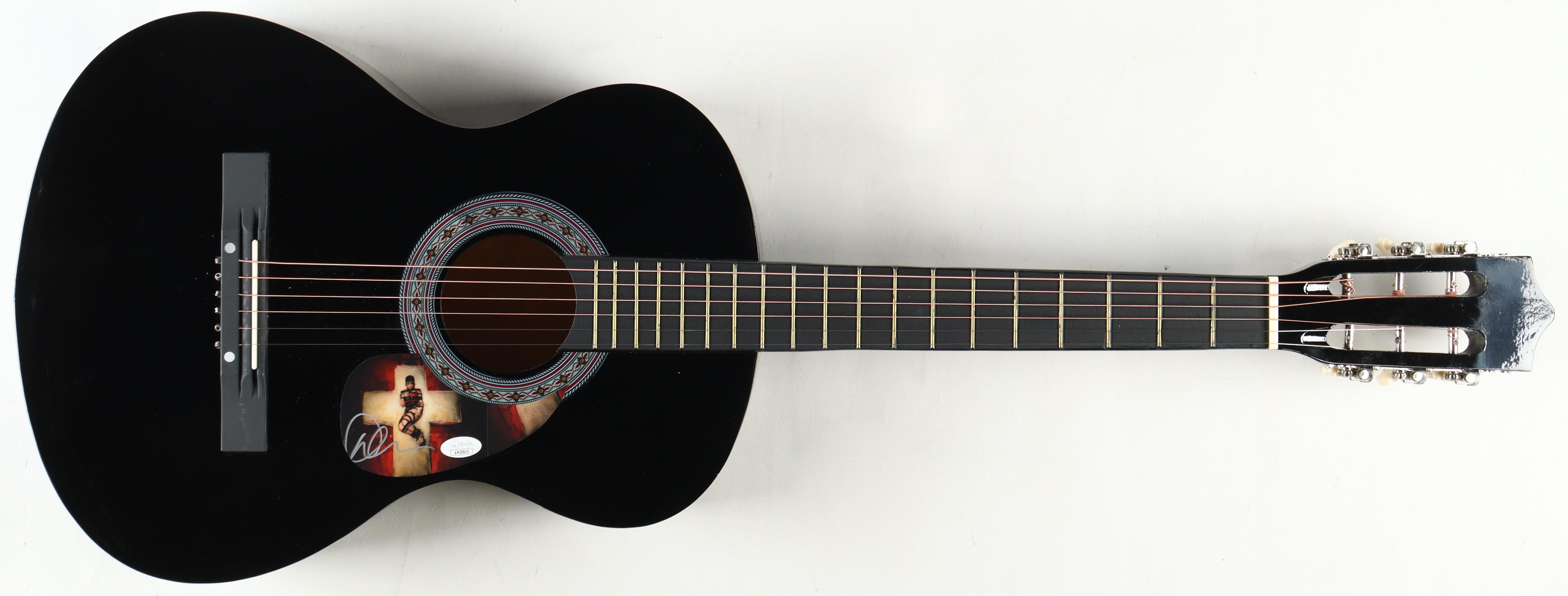 Guitar measures 38” in size has been hand-signed on the pick-guard by Demi Lovato.