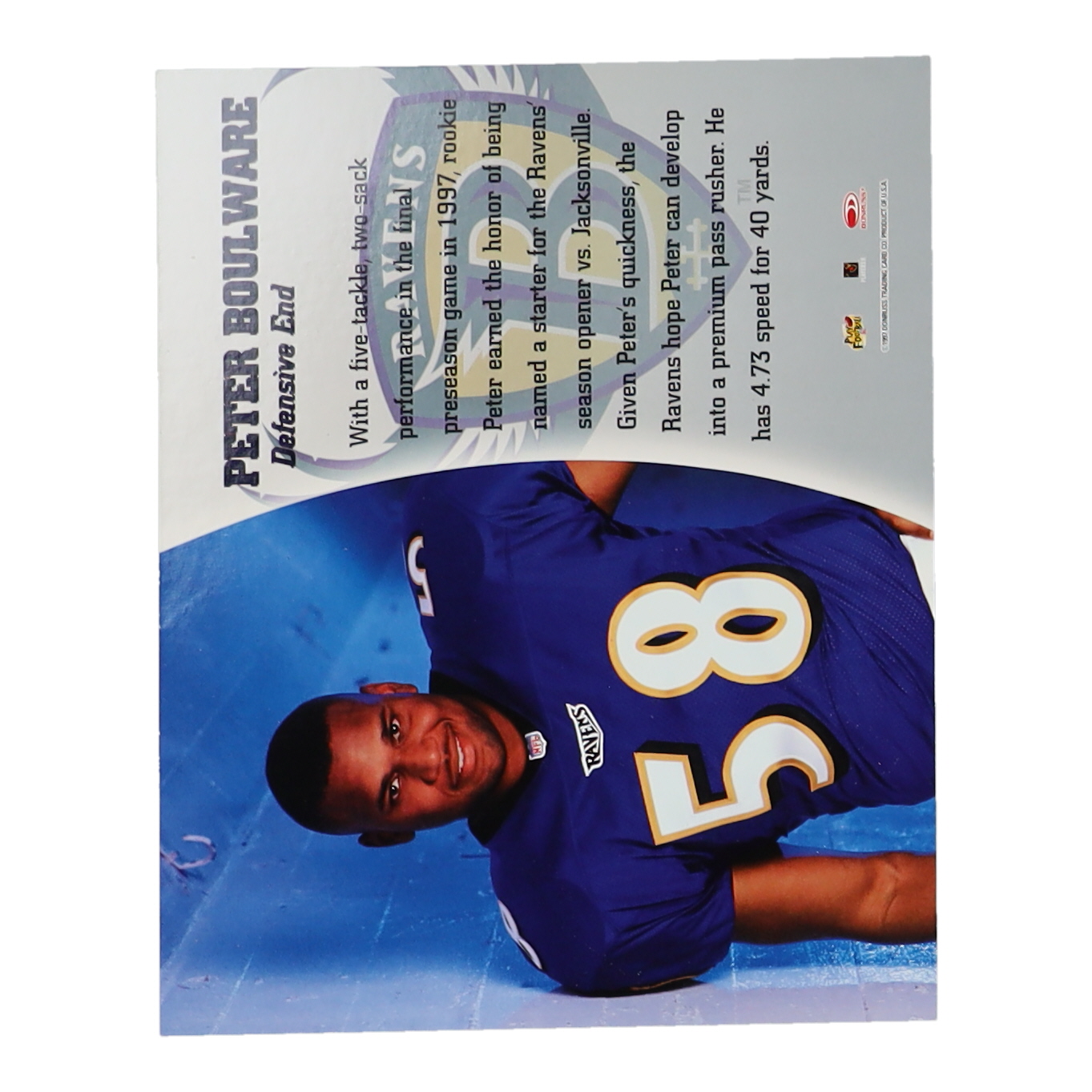 Please see photos for details regarding the condition of the card (Baltimore Ravens).