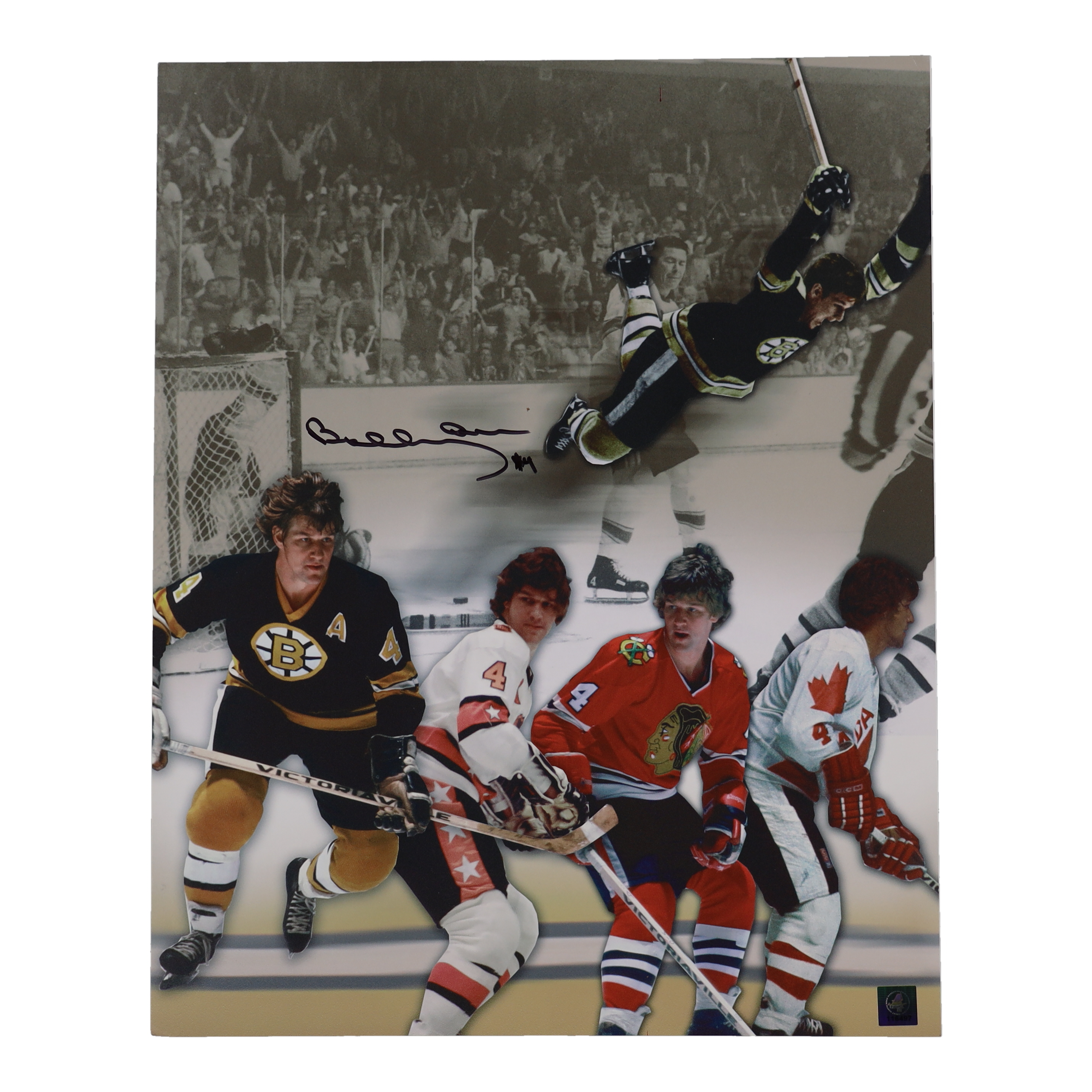 Photo measures 16" x 20" in size and has been hand-signed by Bobby Orr (Boston Bruins, HOF).