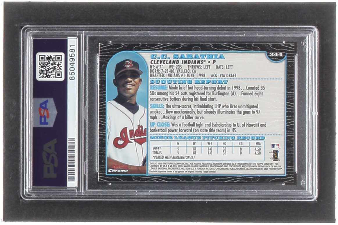 C.C. Sabathia Signed 1999 Bowman Chrome #344 RC (PSA)