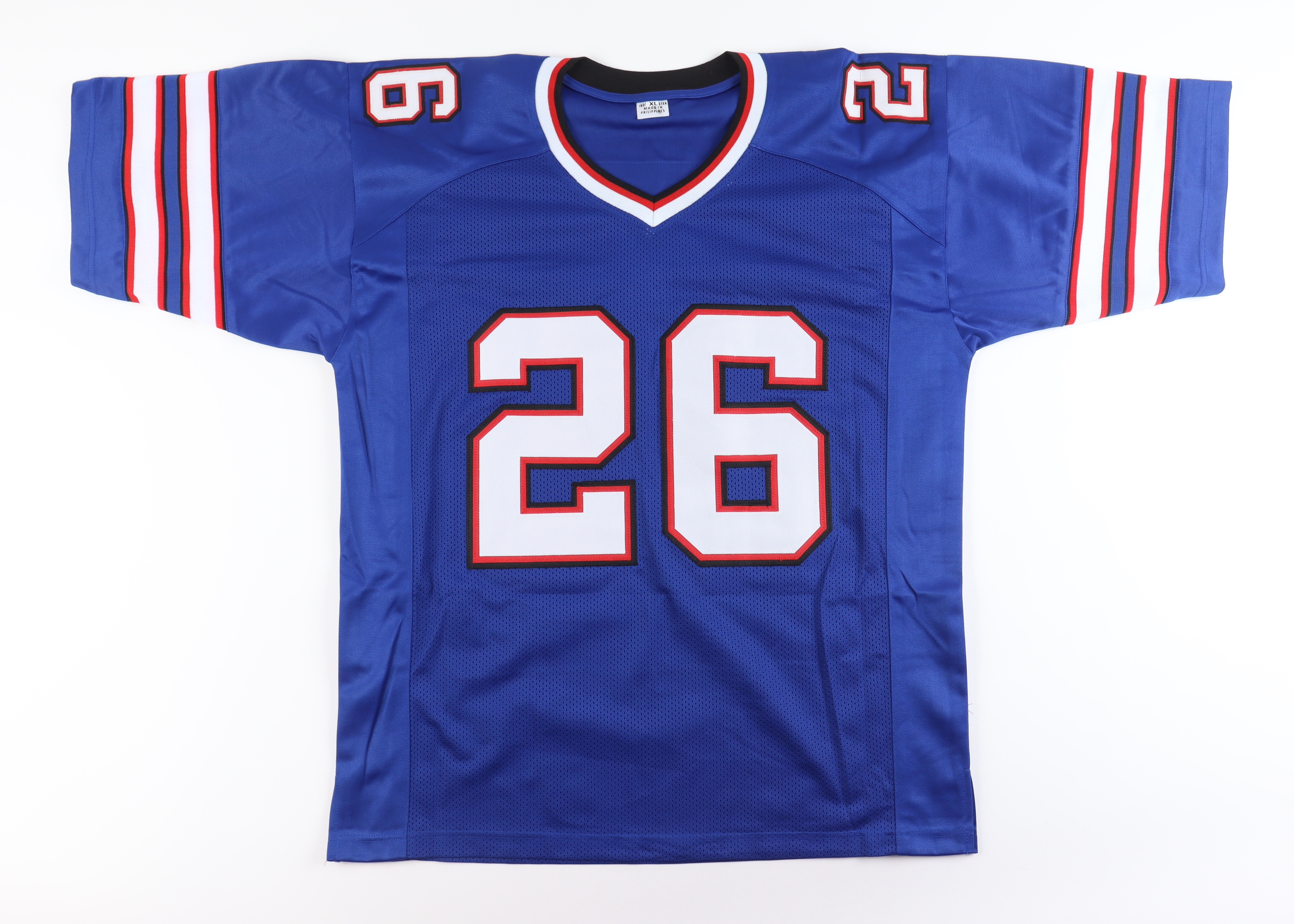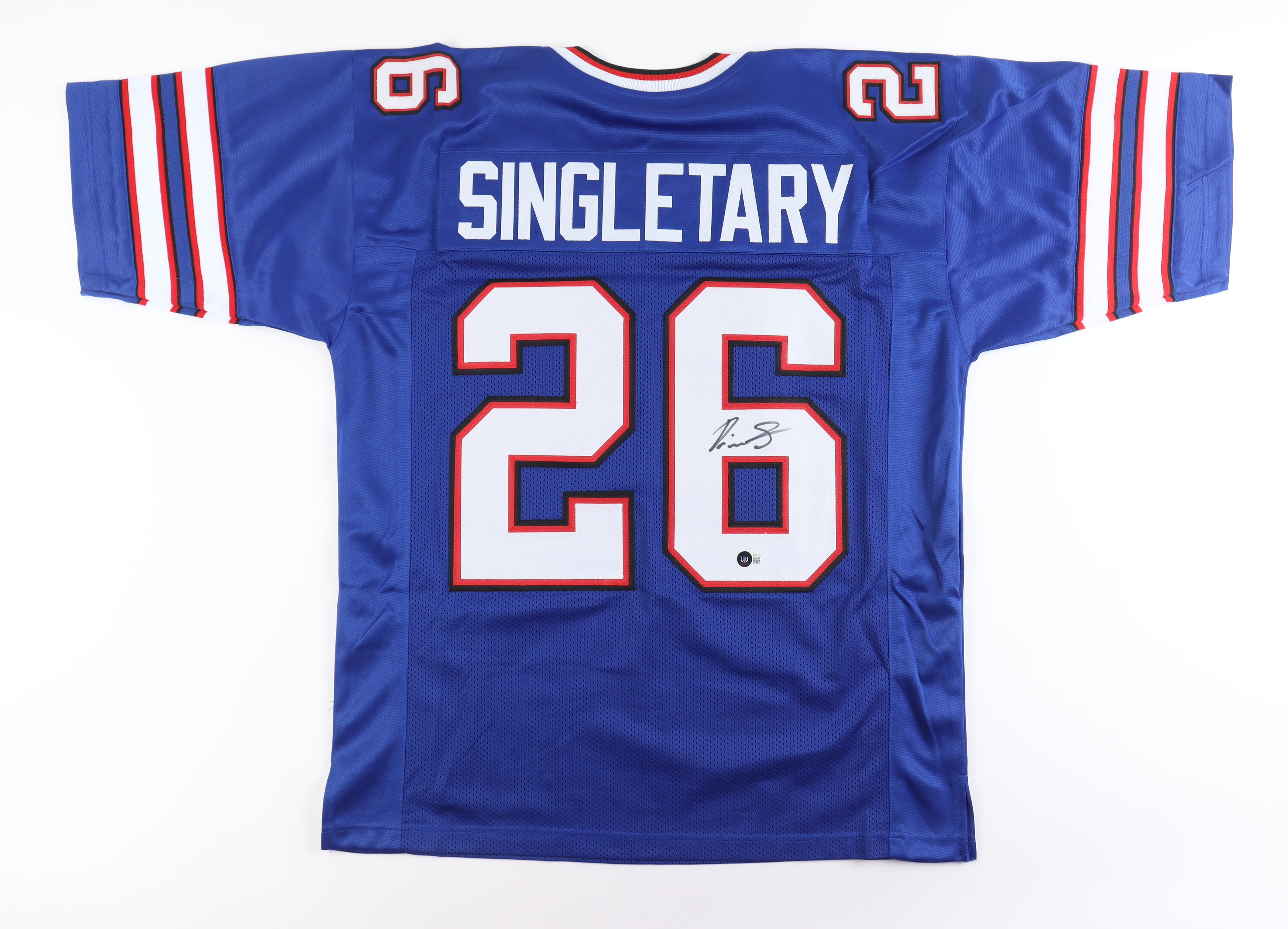Custom jersey with everything sewn on, size XL. Hand-signed by Devin Singletary.