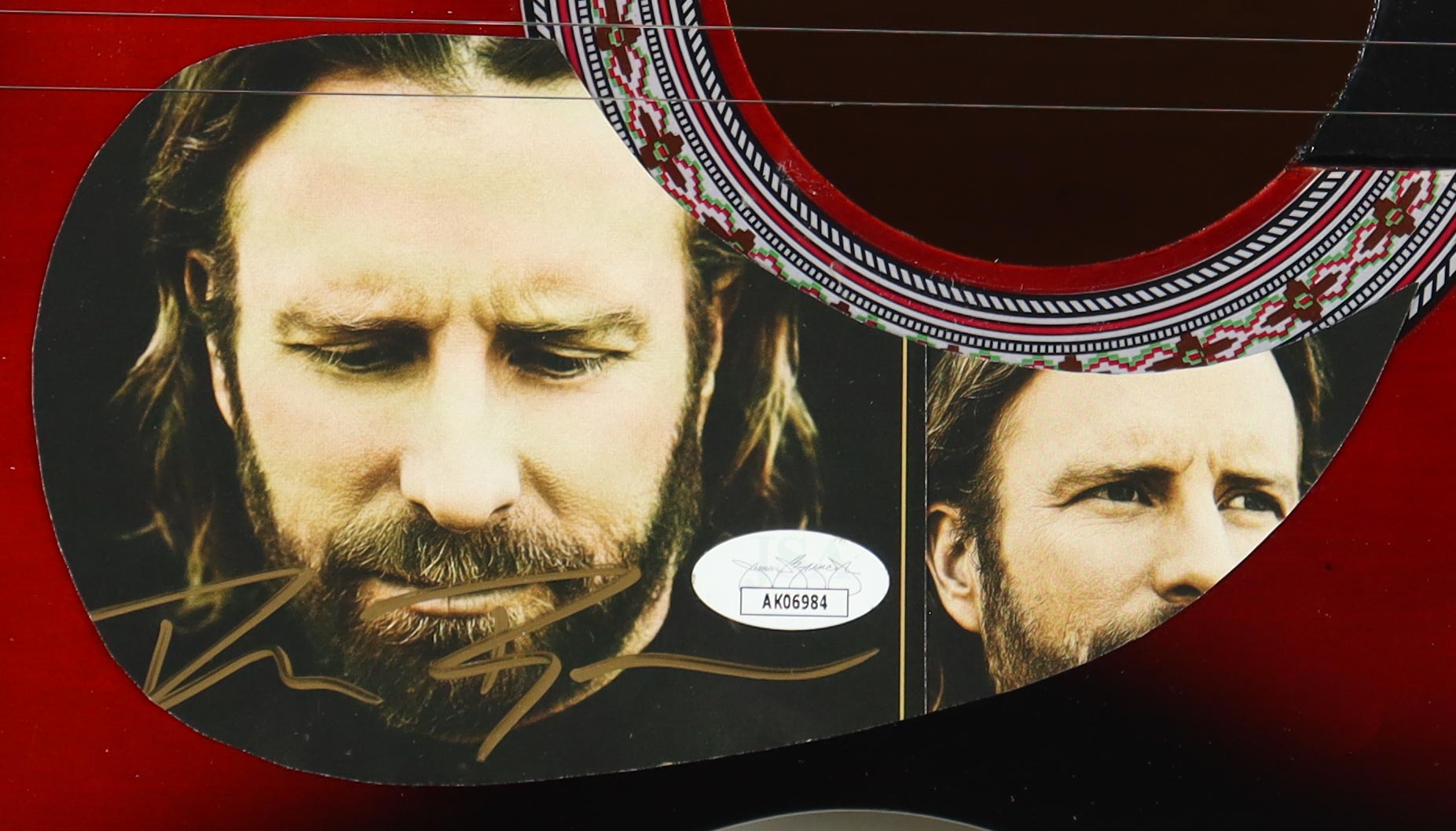 Guitar measures approximately 38" in length. Hand-signed on a CD cover that has been repurposed as a pickguard by Dierks Bentley.