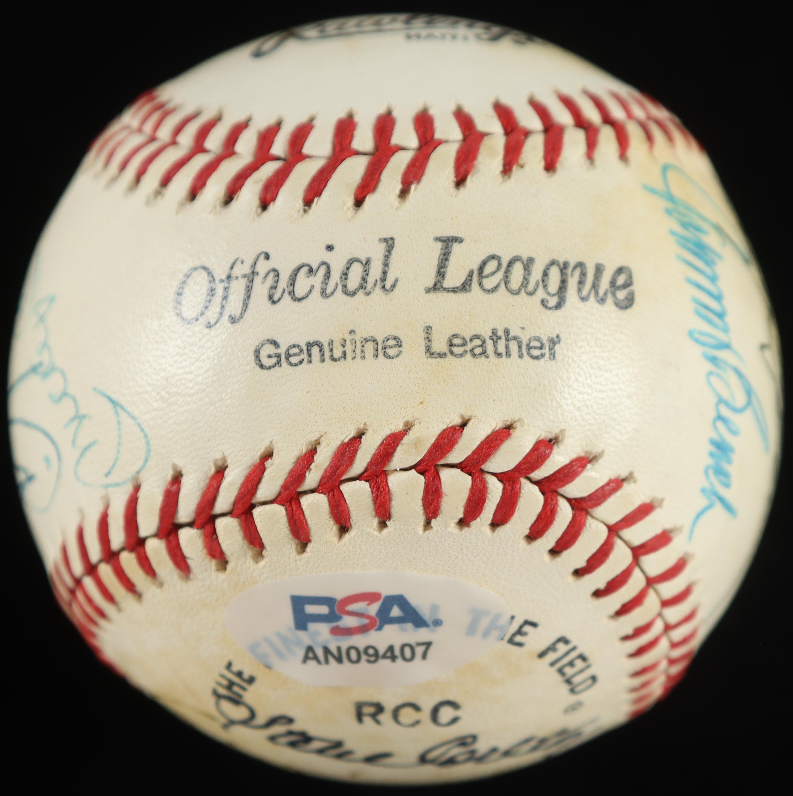 Hall Of Famers (18) Multi-Signed OL Baseball Signatures Include Mickey Mantle, Ernie Banks, Carl Yastrzemski, Frank Robinson & Don Drysdale (PSA)