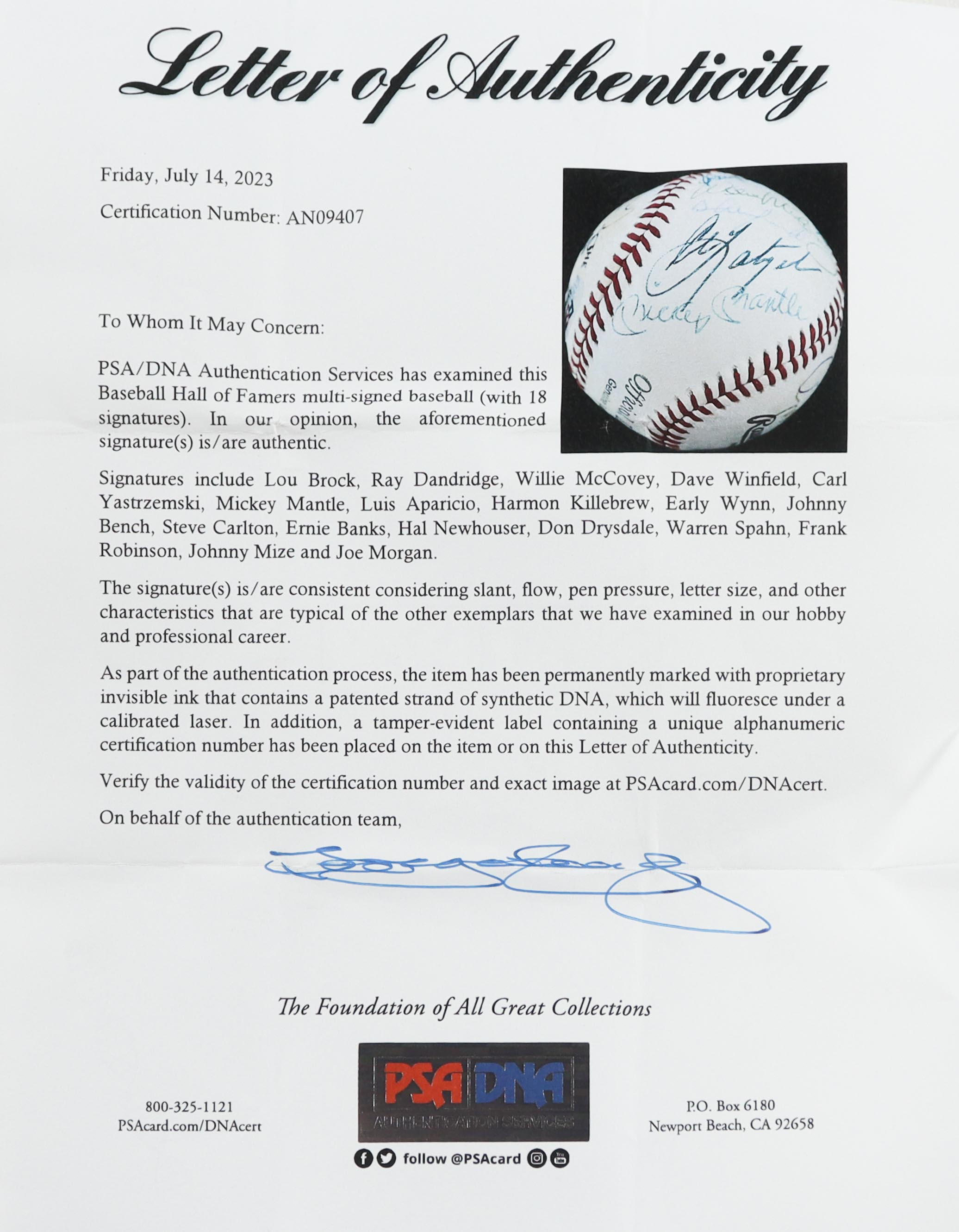The autograph(s) includes an official PSA/DNA hologram and matching LOA for authenticity purposes.