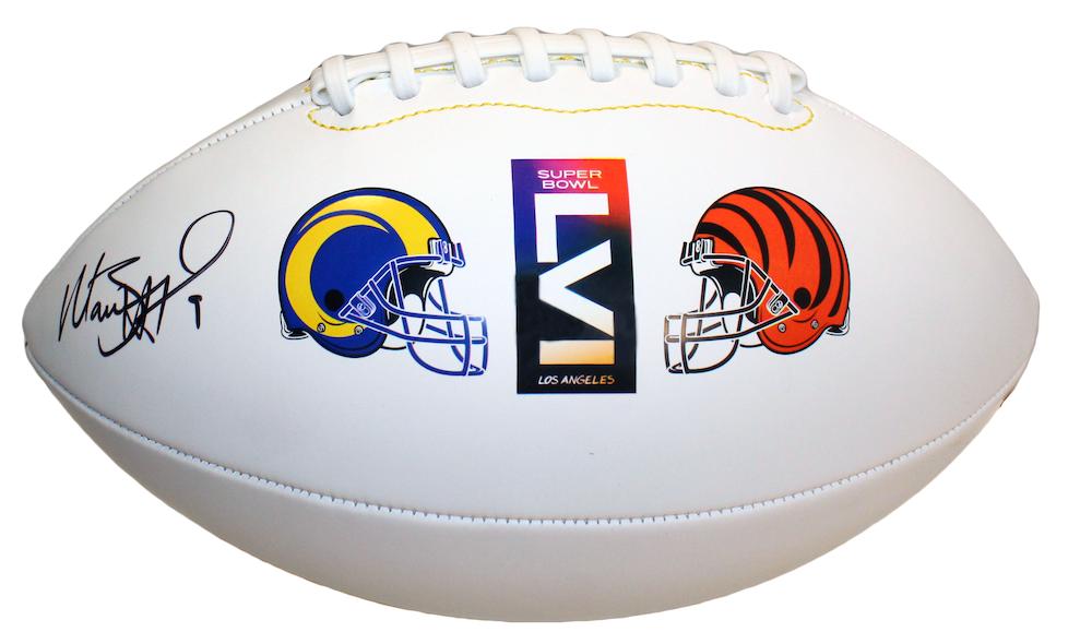 Super Bowl LVI Match-Up logo football. Hand-signed by Matthew Stafford (Los Angeles Rams).