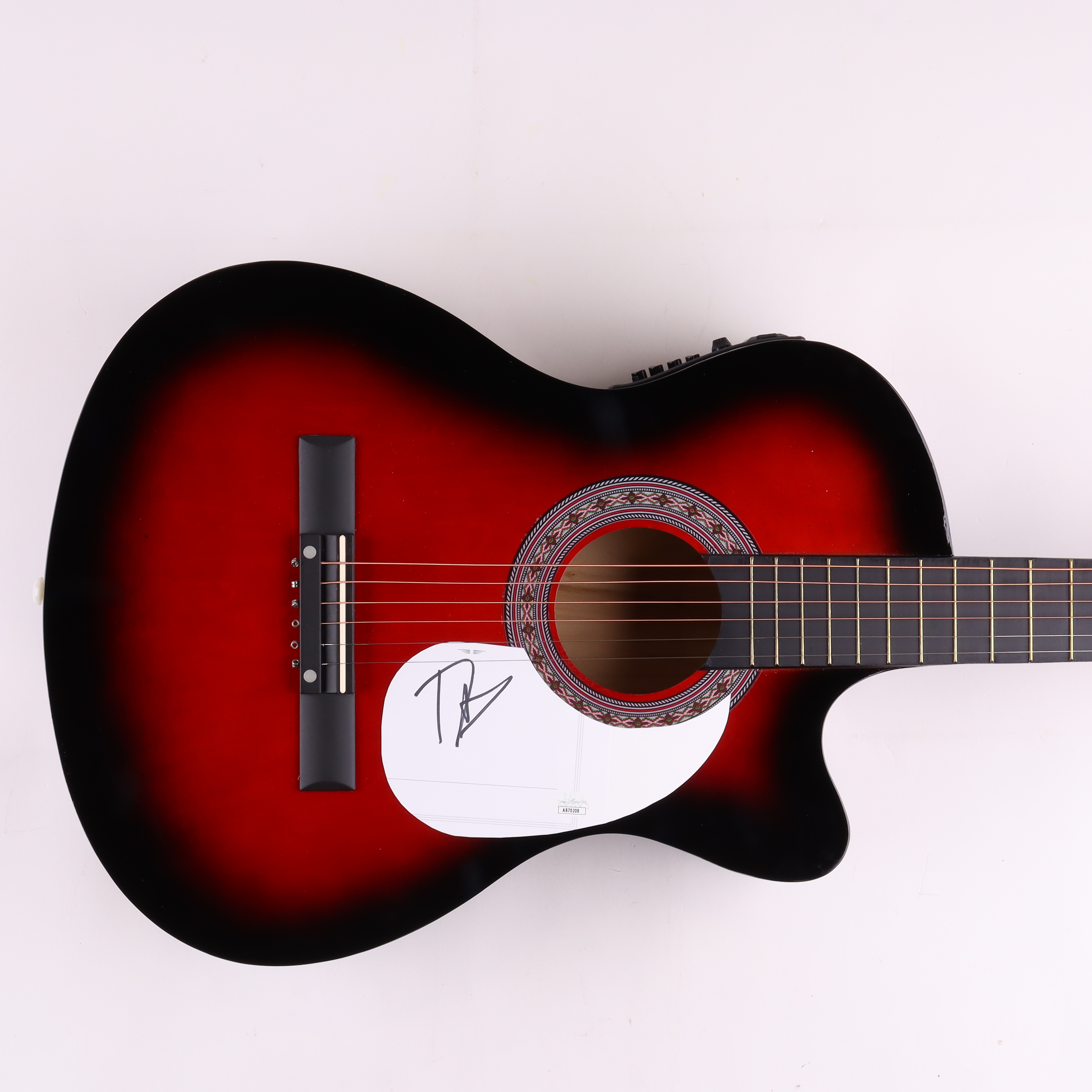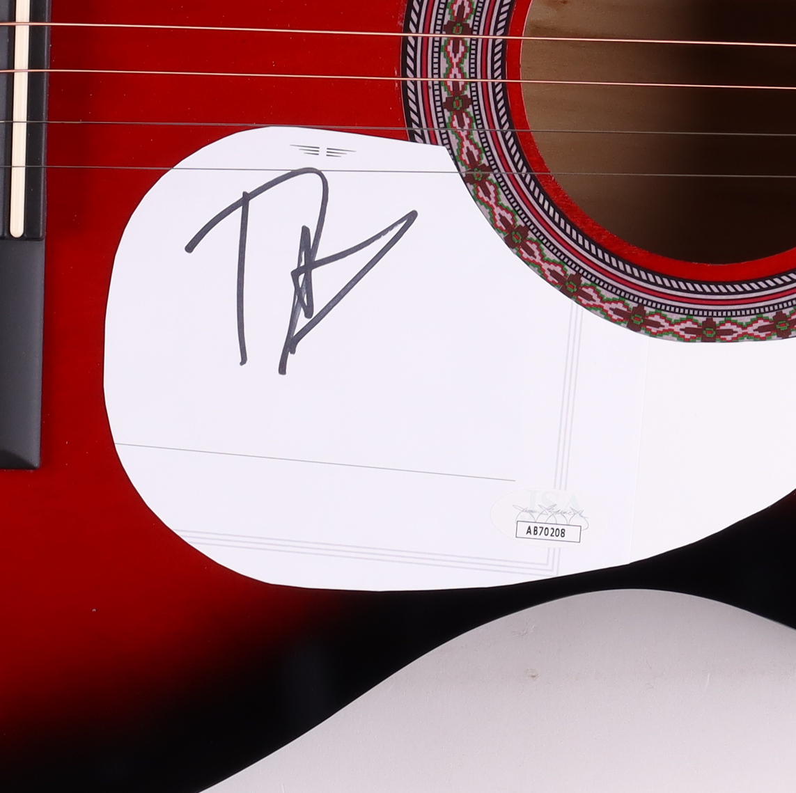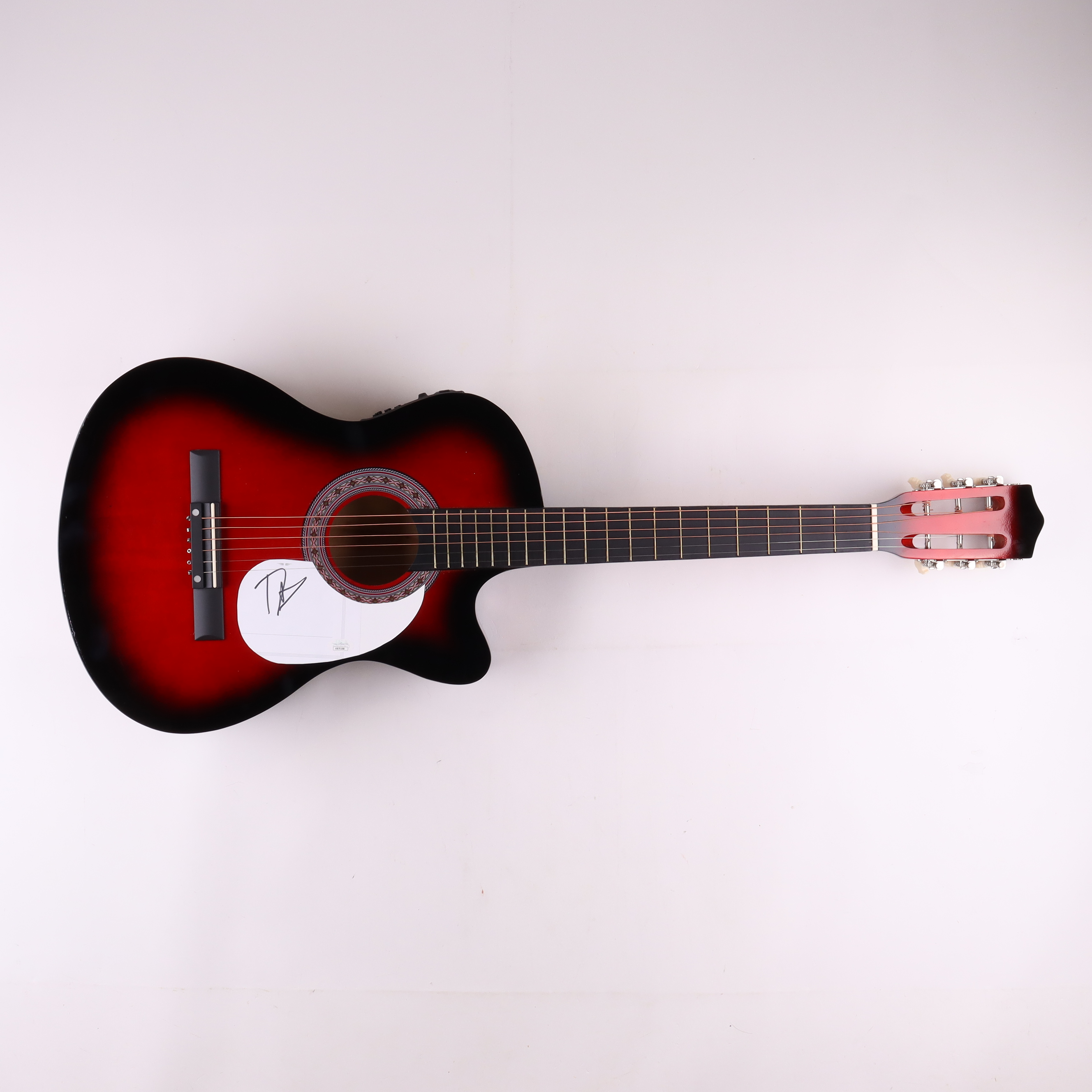Acoustic Guitar measures approximately 38" in length. Hand-signed by David Grohl on the pick-guard. This guitar is a display guitar. It is a lower-tier version and is not the same quality as one that a musician would play.