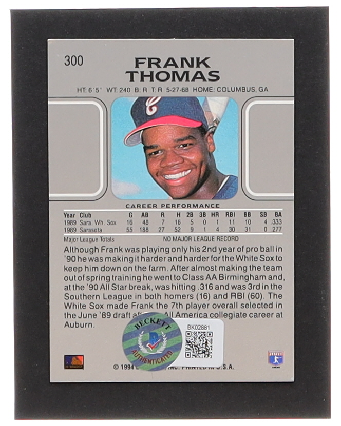 Card has been hand-signed by Frank Thomas (Chicago White Sox, HOF). Please see photos for more details regarding the condition of the card.