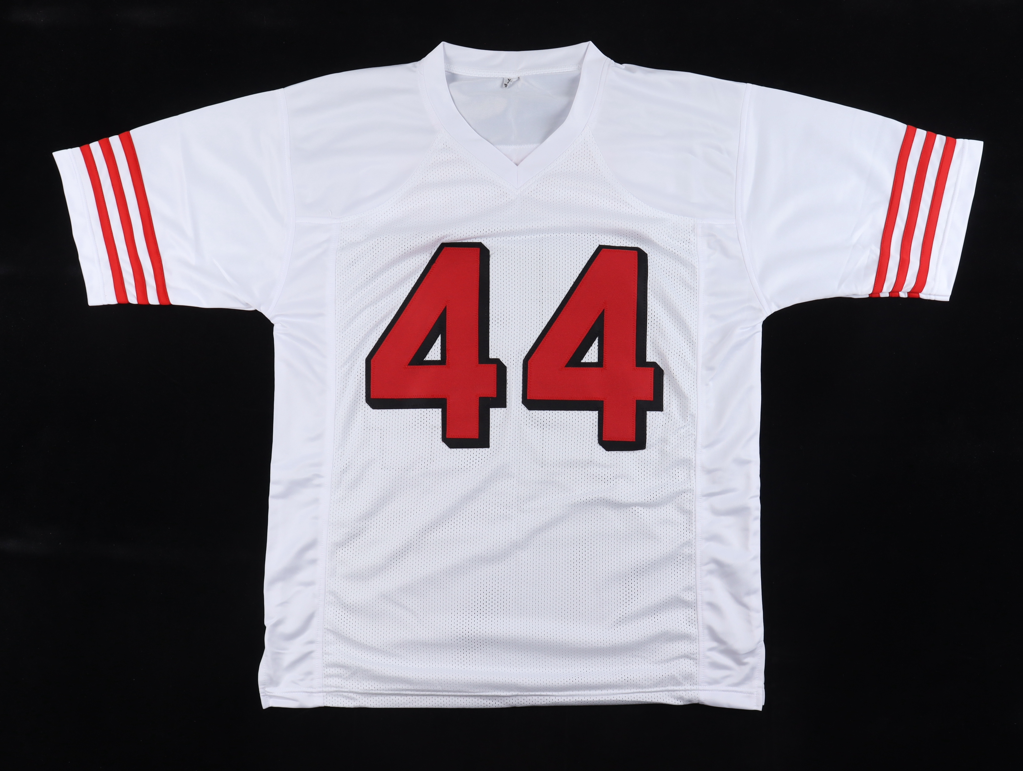 Custom football jersey. Everything sewn on, size XL. Hand-signed by Kyle Juszczyk.