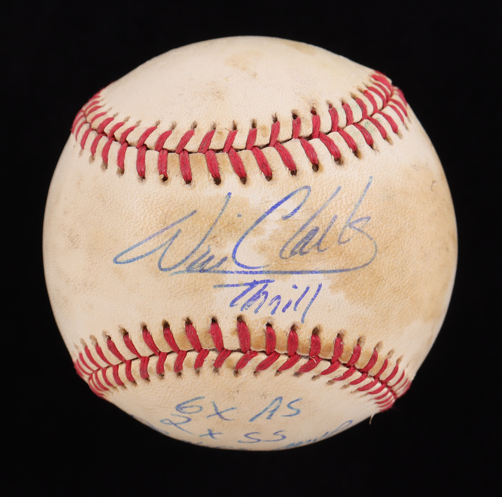 Rawlings Official National League Baseball. Hand-signed and inscribed by Will Clark (San Francisco Giants). Please note, the baseball is naturally toned.