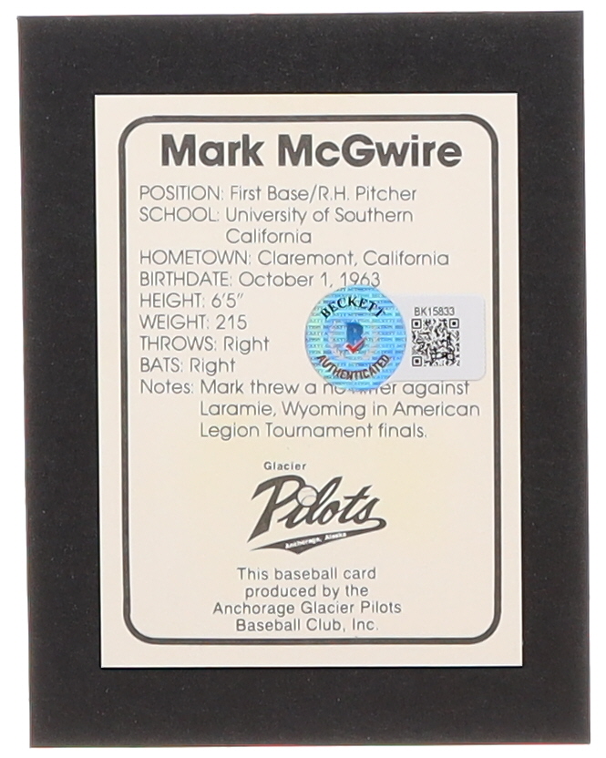 Mark McGwire Signed 1982 Anchorage Glacier Pilots McGwire #1 (Beckett)