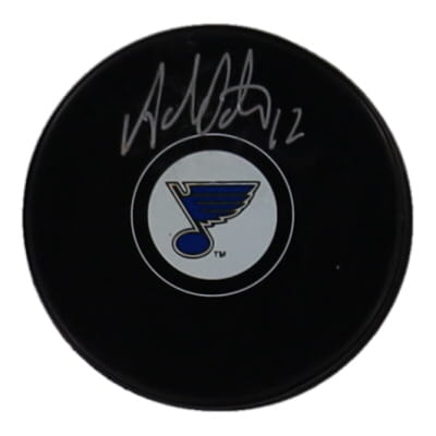 St. Louis Blues logo hockey puck has been hand-signed by Adam Oates (HOF).
