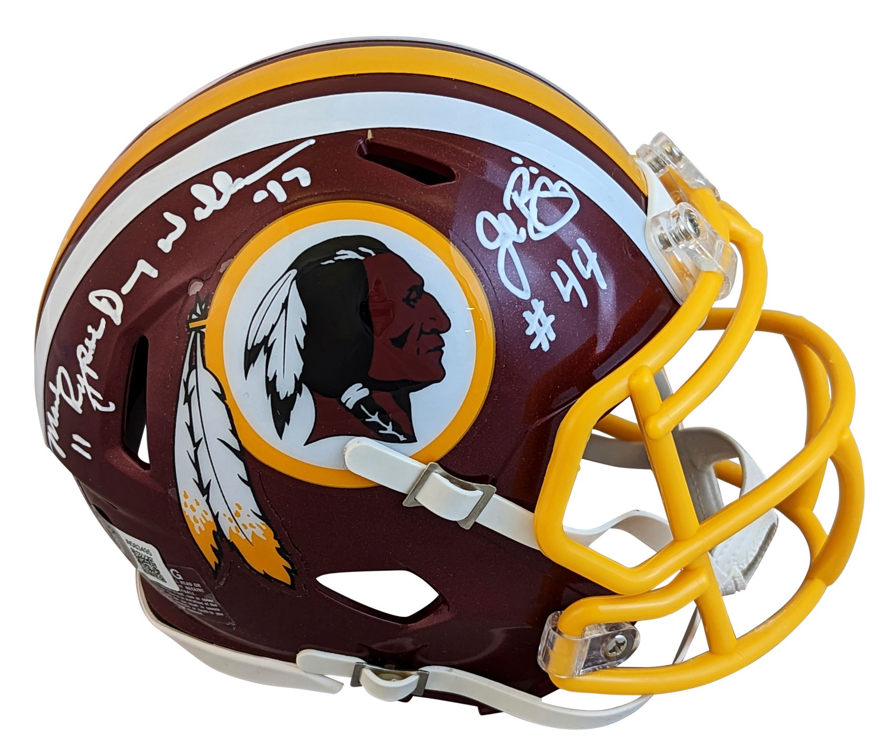 Riddell Washington Redskins Speed mini helmet. Hand-signed by Mark Rypien, Doug Williams, and John Riggins (HOF).