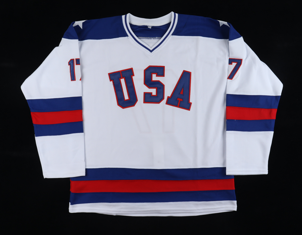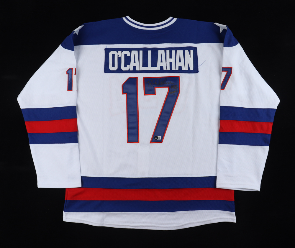 Custom jersey. Everything sewn on, size XL. Hand-signed and inscribed by Jack O'Callahan (Miracle on ice 1980 USA Olympics team).
