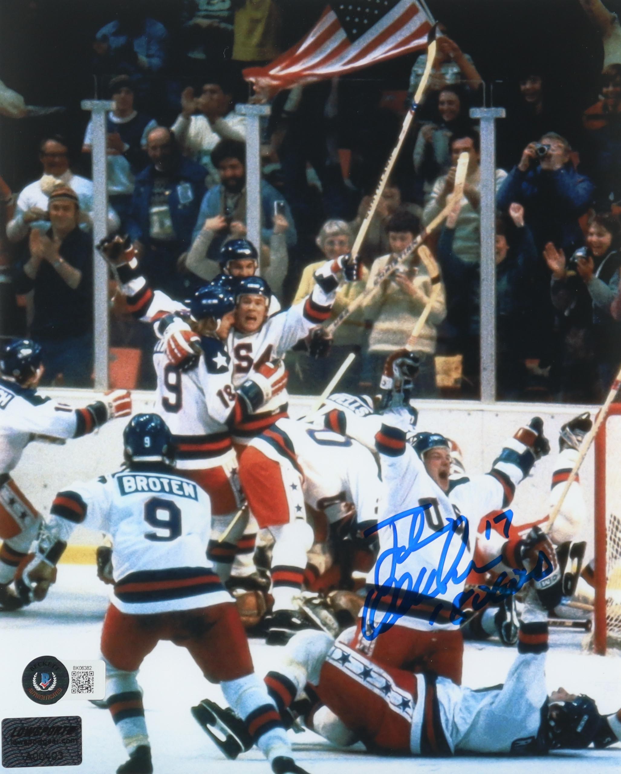 Jack O'Callahan Signed "Miracle on Ice" Team USA 8x10 Photo Inscribed "80 Gold" (Beckett)